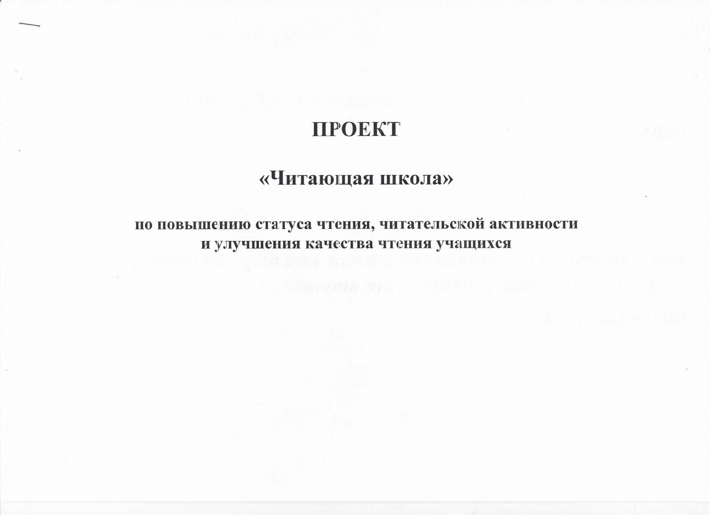 » » План проекта "Читающая школа"