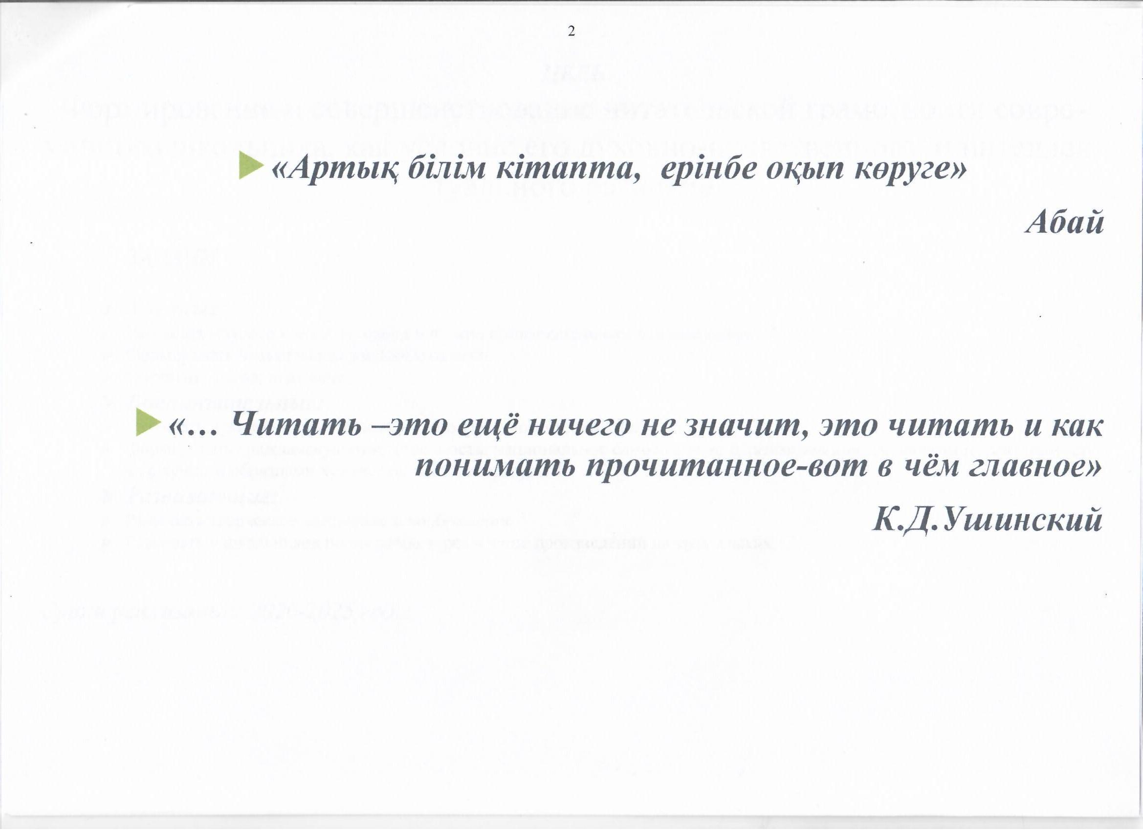 План проекта "Читающая школа" » №85 Орта мектеп