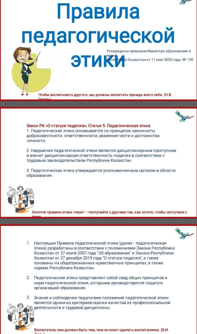 Правила педагогической этики » №85 Орта мектеп