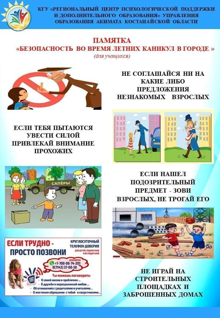 Памятка "Безопасность во время летних каникул в городе" » №85 Орта мектеп