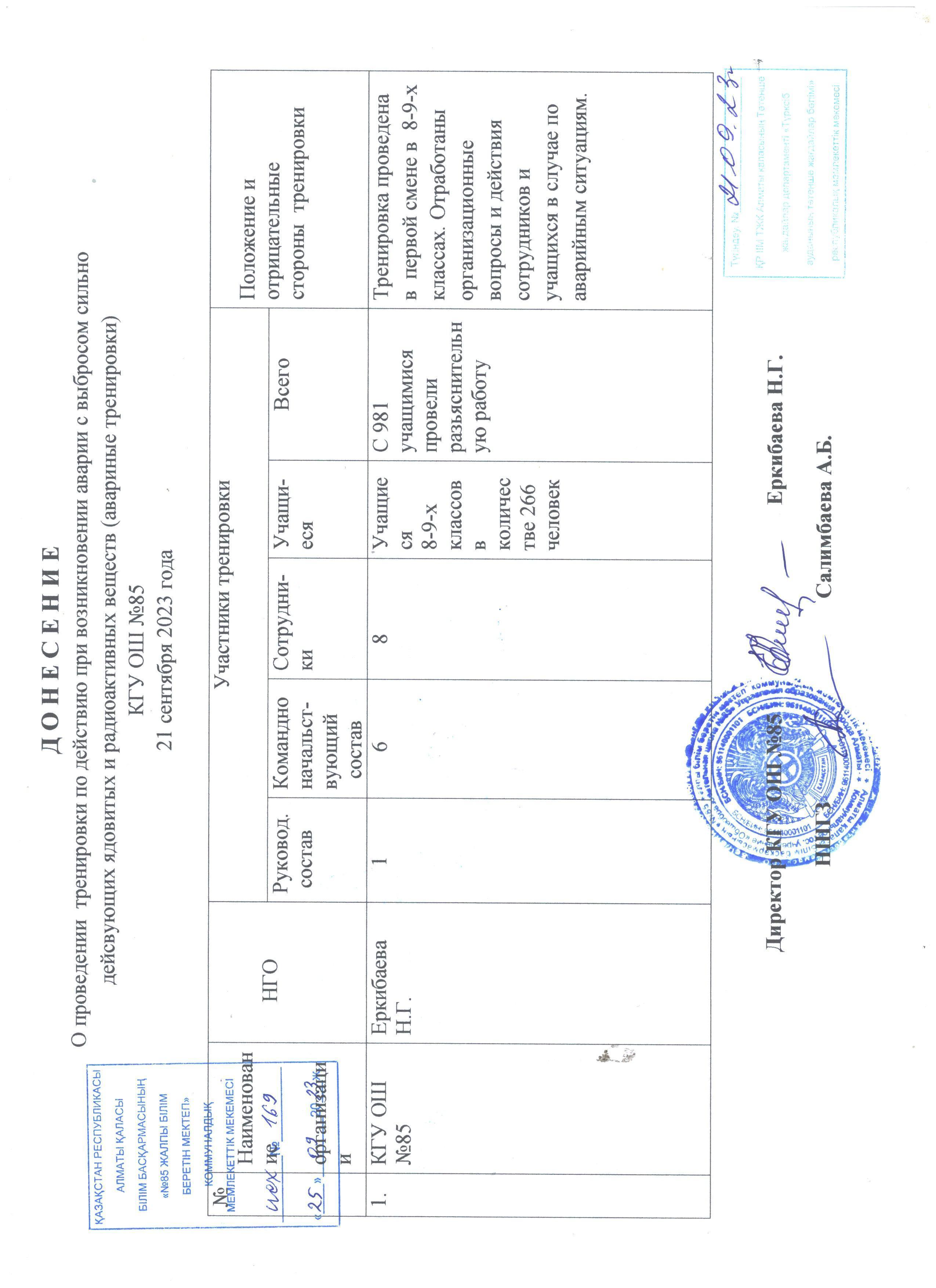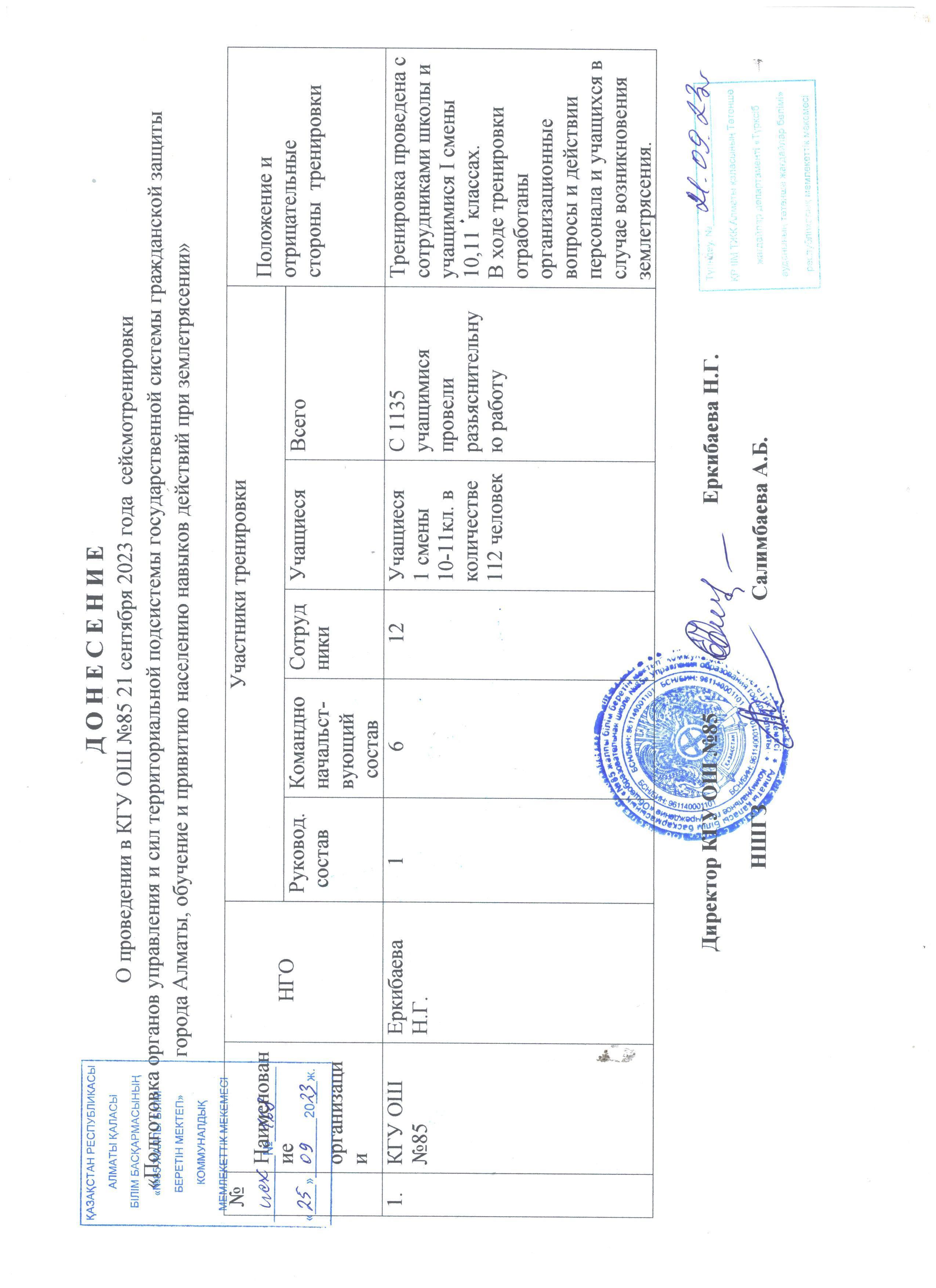 Жалпы қалалық сейсмикалық жаттығулар » №85 Орта мектеп