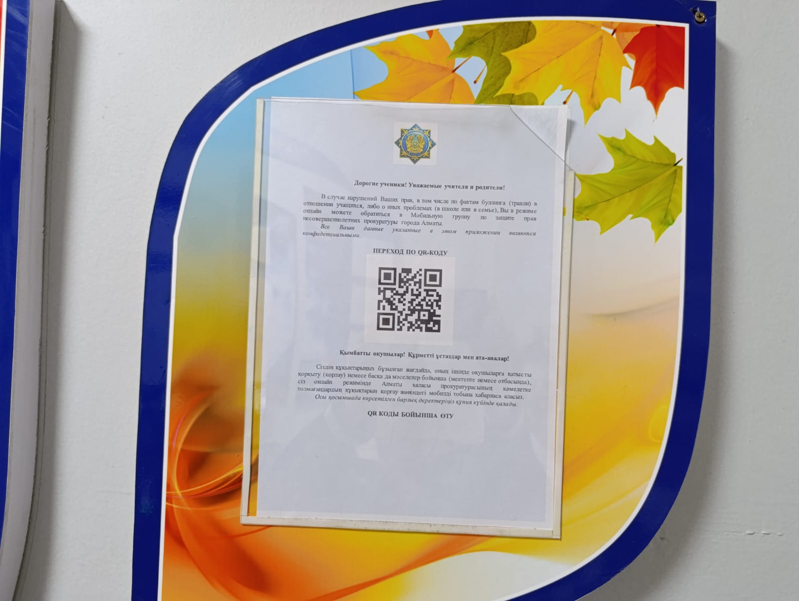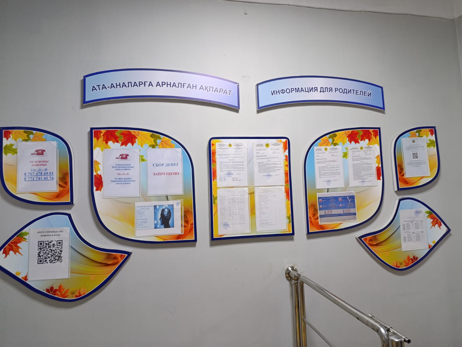 Ата-аналарға арналған ақпаратты, балалардың құқықтарын қорғау жөніндегі әлеуметтік қызметтердің телефондары мен мекенжайларын мектептегі стендте орналастыру.