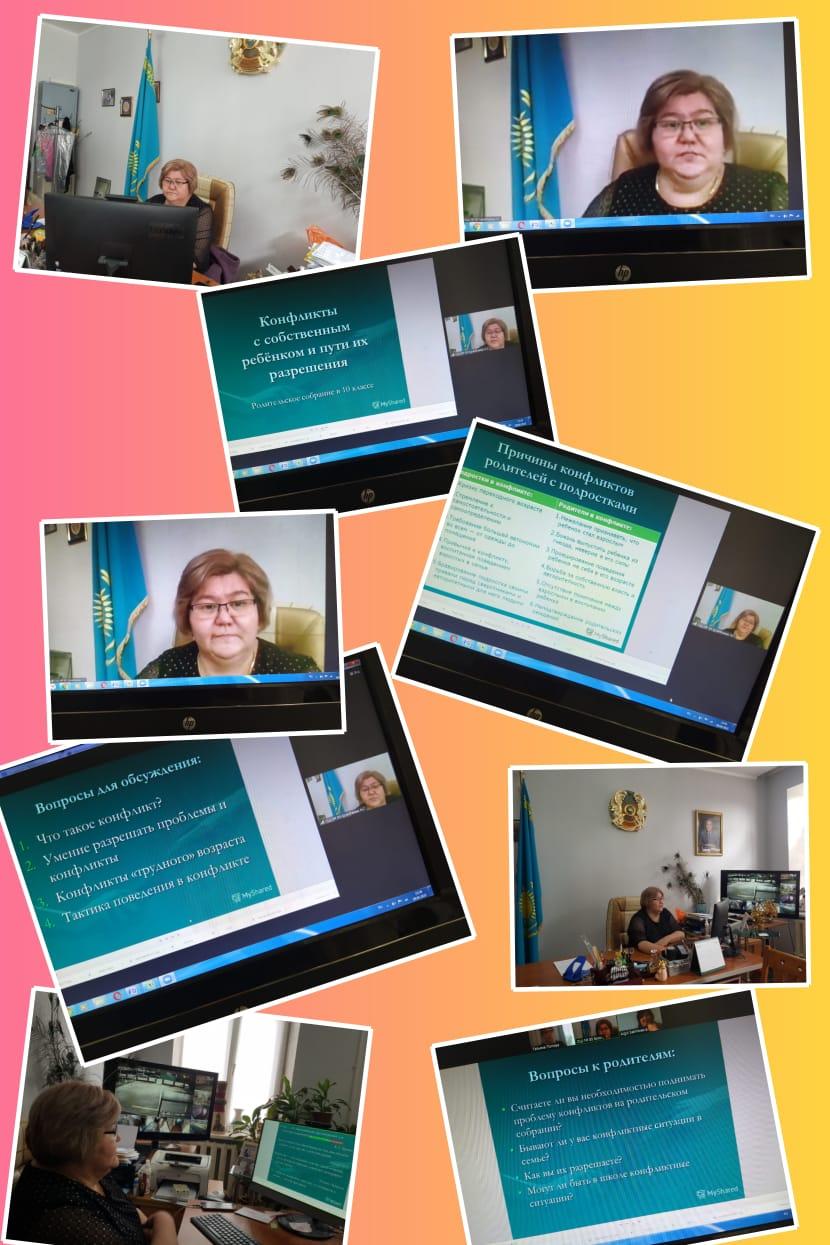 10.04.2021 г. прошло очередное родительское собрание по теме "Конфликты с собственным ребенком и пути их разрешения" в рамках онлайн-встречи "Директорская суббота – голос родителей". Цель встречи – оказание действенной помощи родителям по волнующим их вопросам. На родительском собрании присутствовал школьный психолог, который дал исчерпывающие ответы на все вопросы родителей. Встреча прошла продуктивно.
