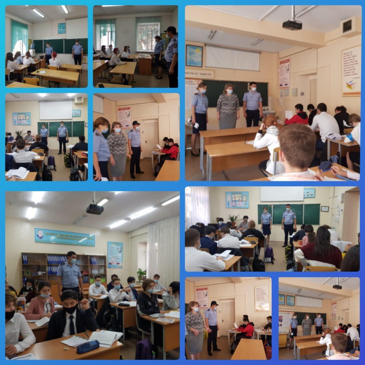 Беседа школьного полицейского КГУ ОШ №85 с учащимися 8-11 классов по теме "Профилактика правонарушений". » №85 Орта мектеп