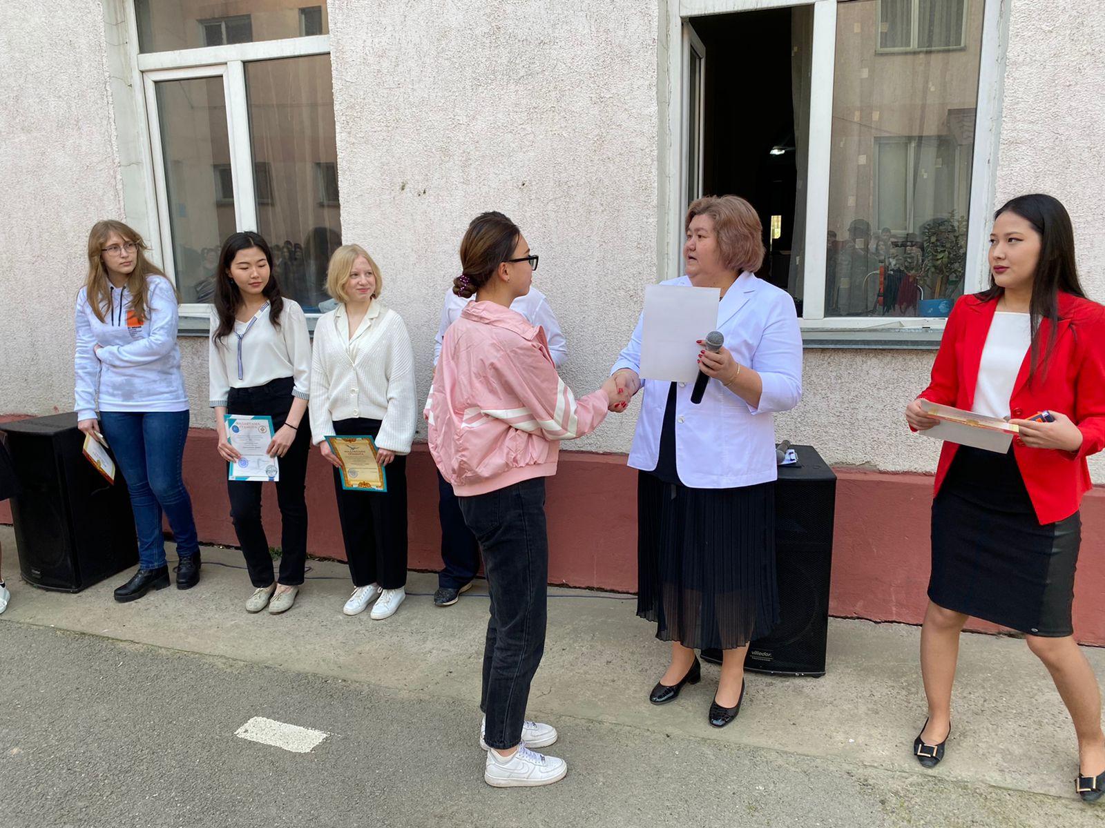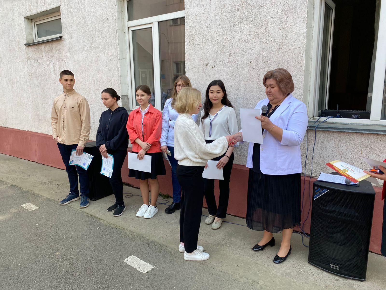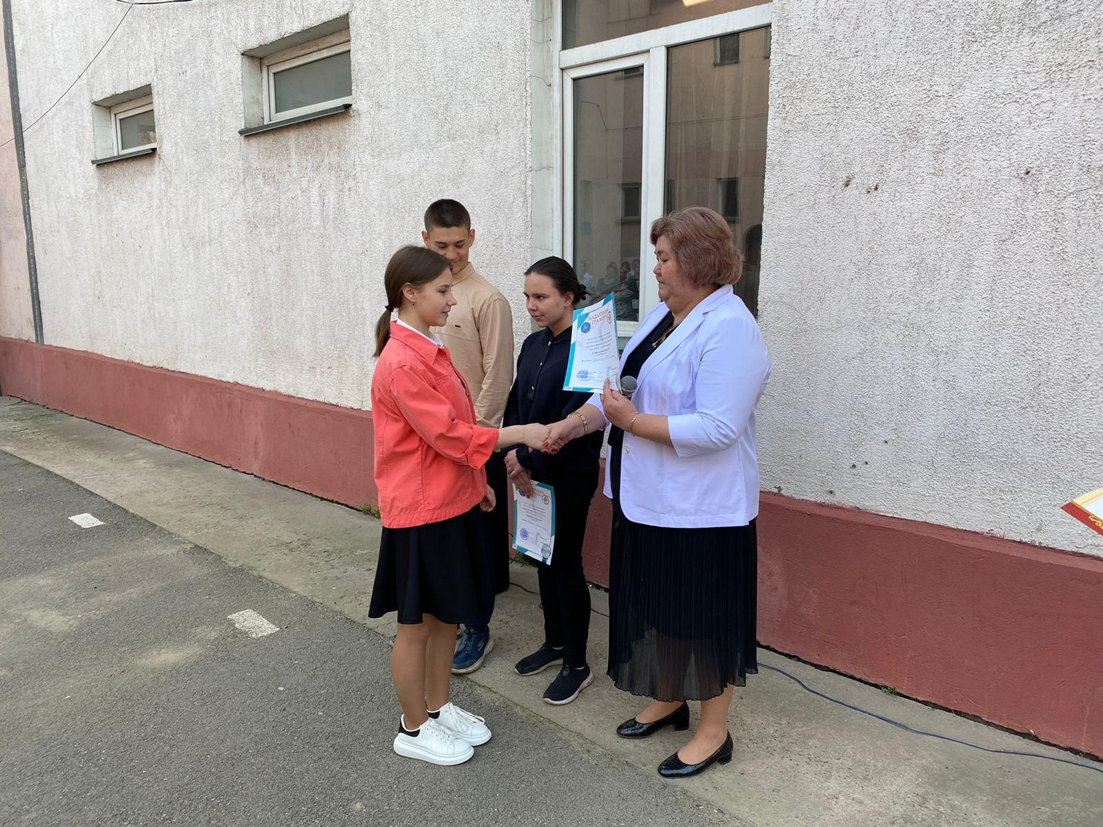 В школе прошла общешкольная линейка для 8-11 классов по теме "Итоги 3 четверти. Напоминание о правилах поведения в школе". На линейке директор школы Еркибаева Н.Г. вручила грамоты учащимся-призёрам районной олимпиады по общеобразовательным предметам.