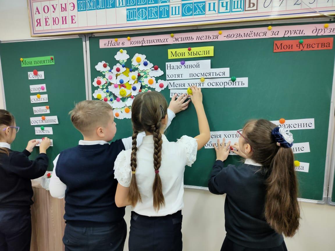 "Ел жастары" бағдарламасы аясында 4 "В" сыныпта "Нам в конфликтах жить нельзя - возьмёмся за руки, друзья!" тақырып бойынша сынып сағаты өтті. Сынып жетекшісі Сыромолотова И.И.