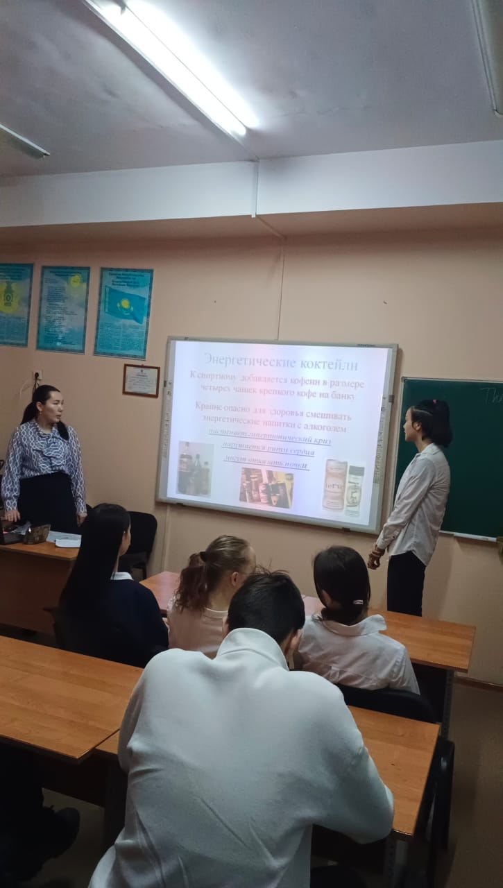 Мектепте энергетикалық, алкогольдік сусындардың адам ағзасына зияны туралы сынып сағаттары, әңгімелері өтті.