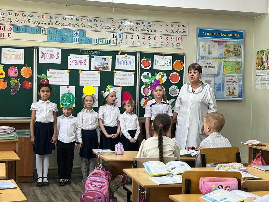 Школьная медсестра Хомякова Ольга Ивановна провела беседу с учащимися начальной школы по теме "Здоровое питание - путь к отличным знаниям".