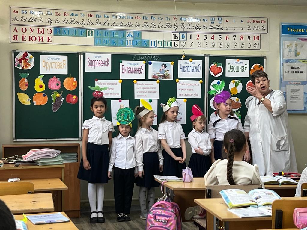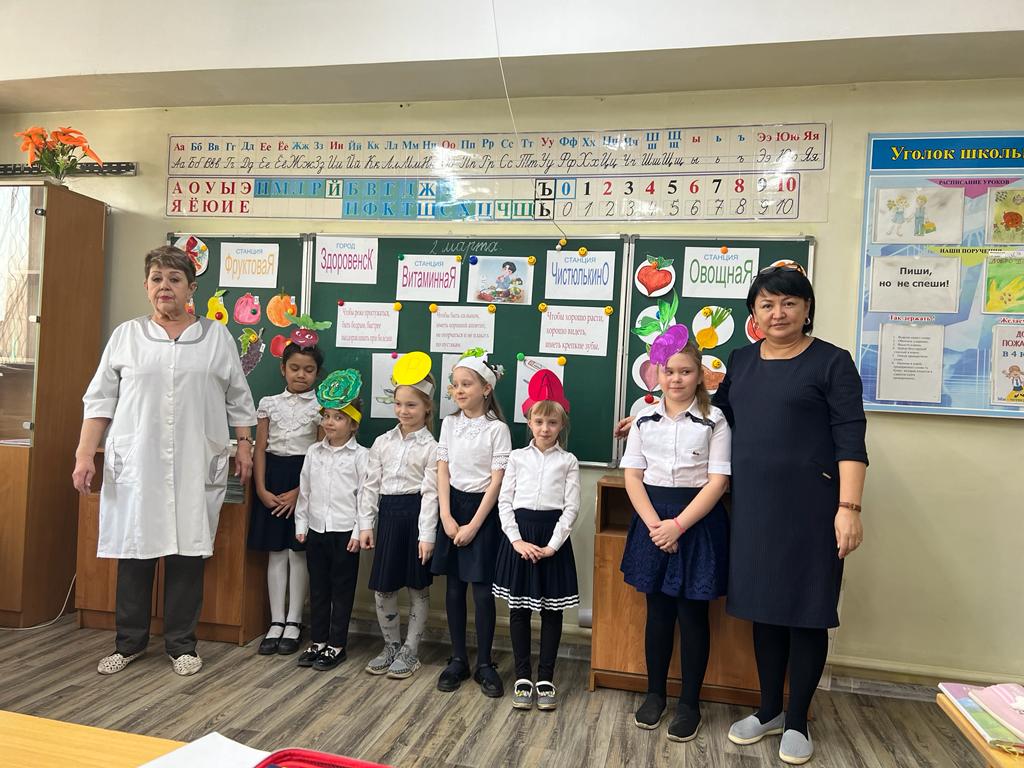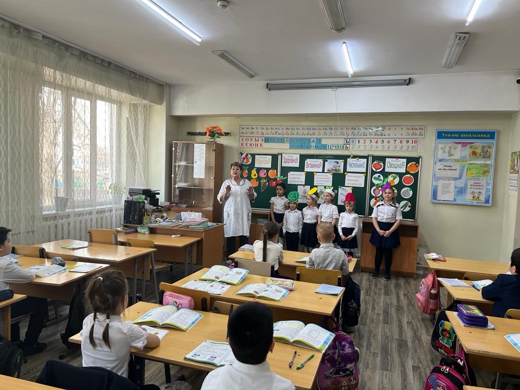 Мектеп медбикесі Хомякова Ольга Ивановна бастауыш сынып оқушыларымен "Дұрыс тамақтану - үздік білімге жол" тақырыбында әңгіме өткізді.