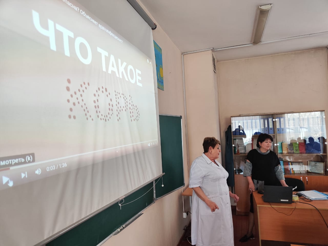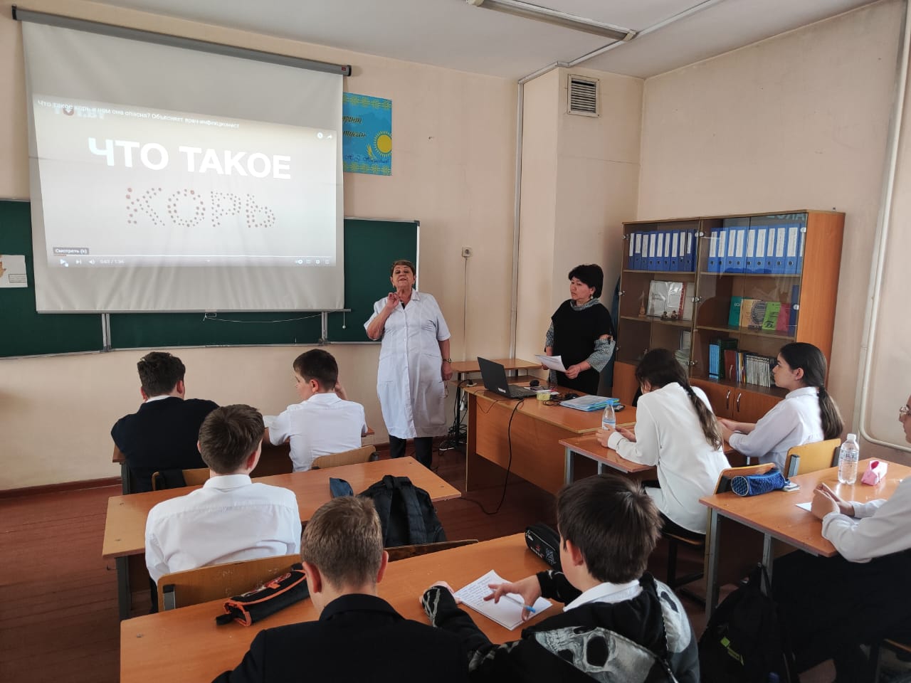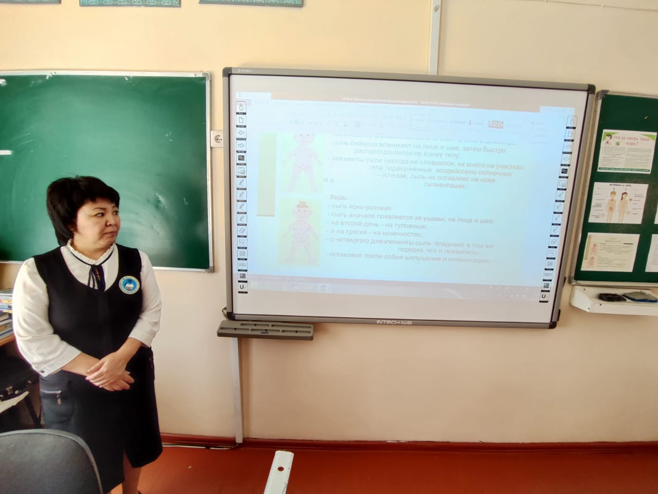 04 апрель 2023 0 1 2 3 4 5 "Қызылша және оның алдын алу" тақырыбында әңгімесі Мектеп медбикесі Хомякова Ольга Ивановна мектеп оқушыларымен "Қызылша және оның алдын алу" тақырыбында әңгіме өткізді. Школьная медсестра Хомякова Ольга Ивановна провела беседу с учащимися школы по теме "Корь и ее профилактика".
