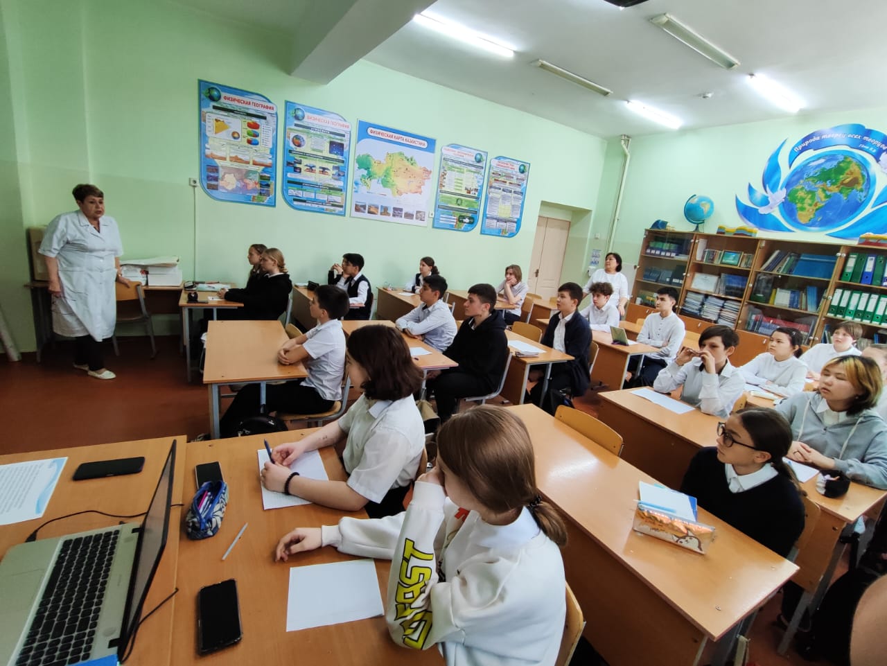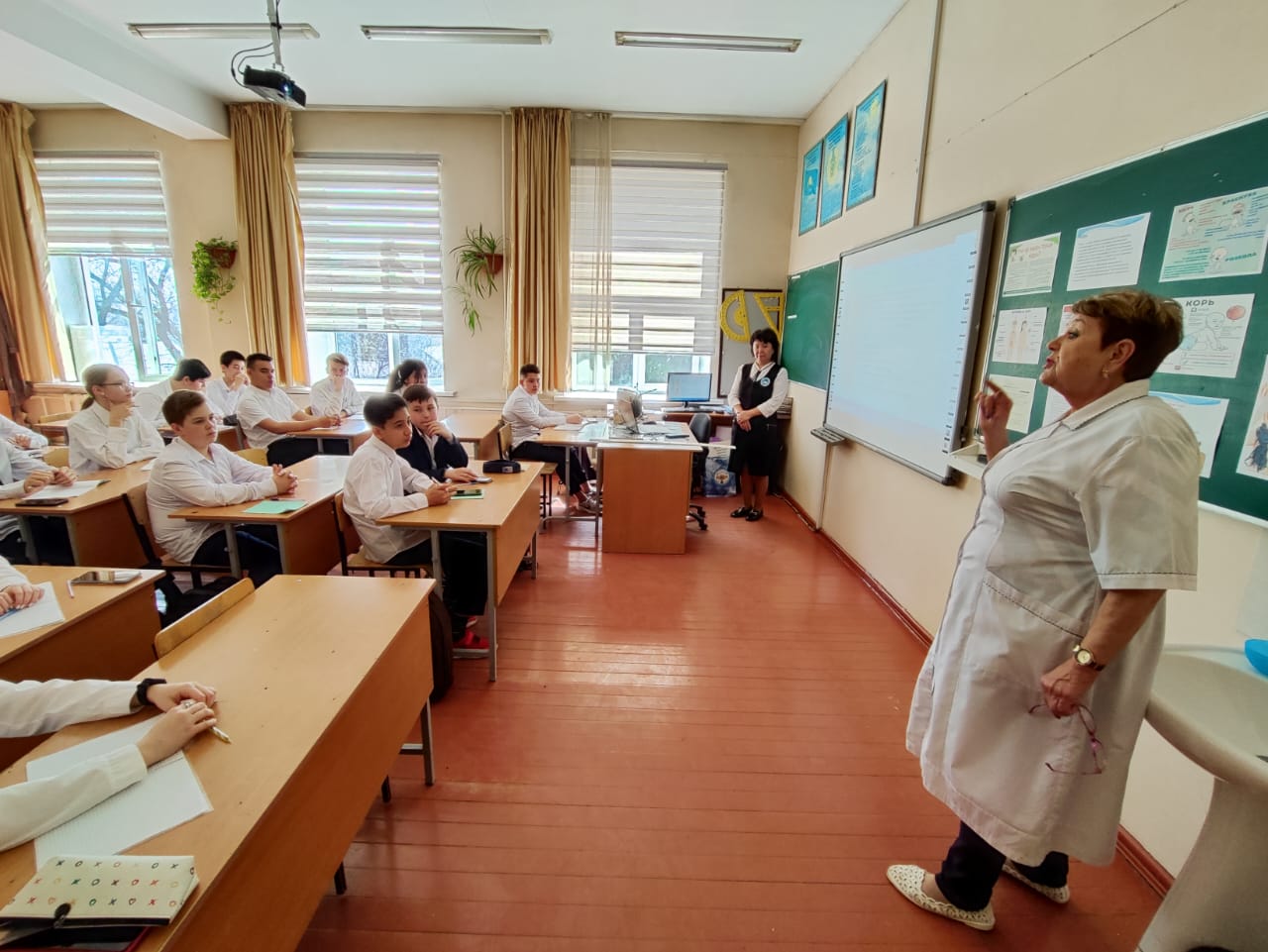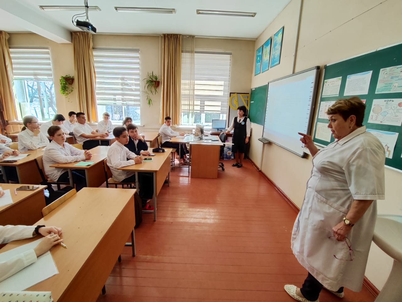04 апрель 2023 0 1 2 3 4 5 "Қызылша және оның алдын алу" тақырыбында әңгімесі Мектеп медбикесі Хомякова Ольга Ивановна мектеп оқушыларымен "Қызылша және оның алдын алу" тақырыбында әңгіме өткізді. Школьная медсестра Хомякова Ольга Ивановна провела беседу с учащимися школы по теме "Корь и ее профилактика".