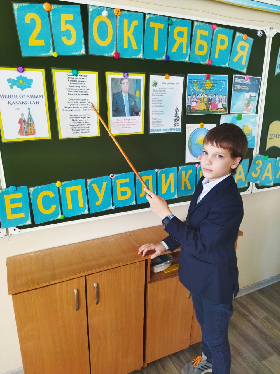 24 октябрь 2023 0 1 2 3 4 5 Республика күніне арналған іс-шаралар 24 қазанда мектепте Республика күніне арналған "Сені сүйемін, менің Қазақстаным!" тақырыбында сынып сағаттары өтті. 24 октября в школе прошли классные часы, посвящённые Дню Республики, по теме "Люблю тебя, мой Казахстан!"