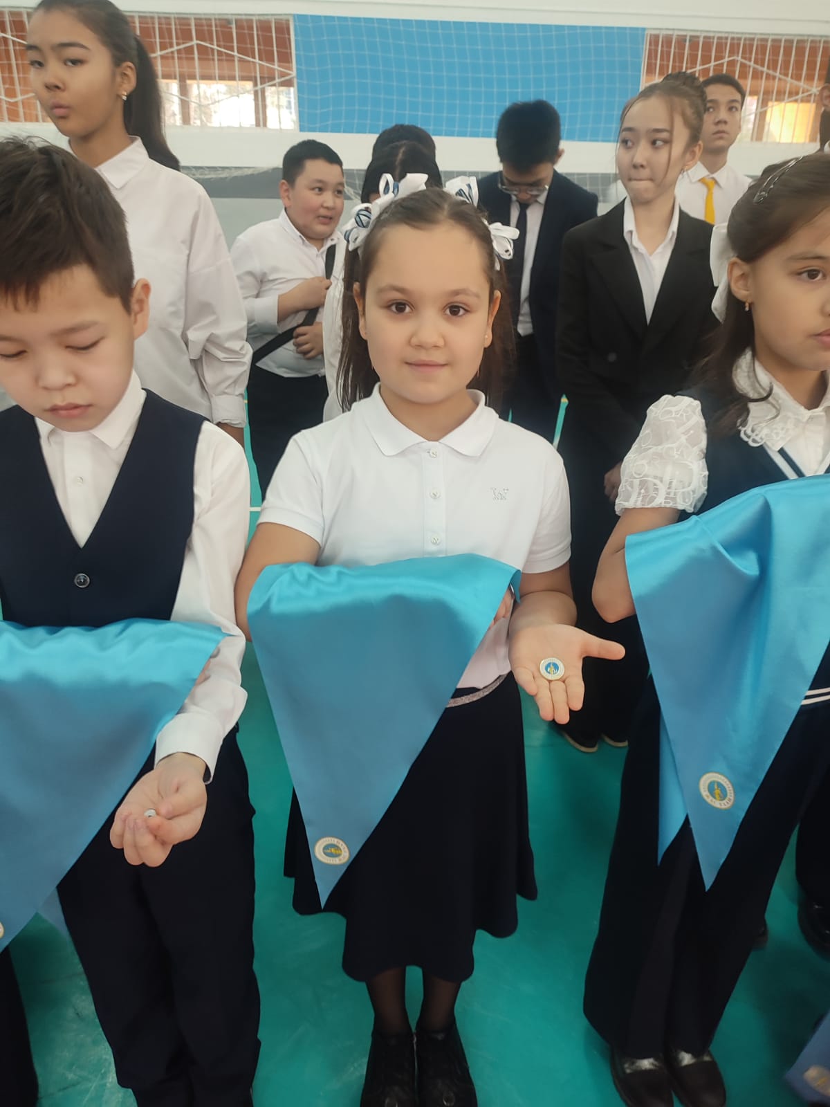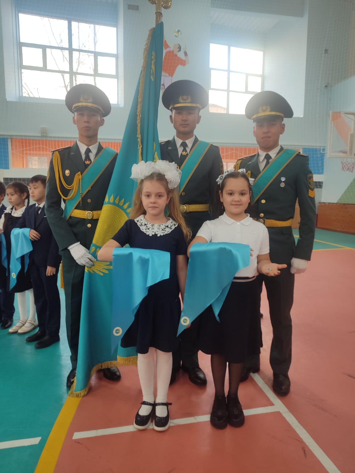 В торжественной обстановке учениц КГУ ОШ №85 Нефедову Анастасию и Фетисову Милану приняли в республиканскую детскую организацию "Жас Қыран". Поздравляем!