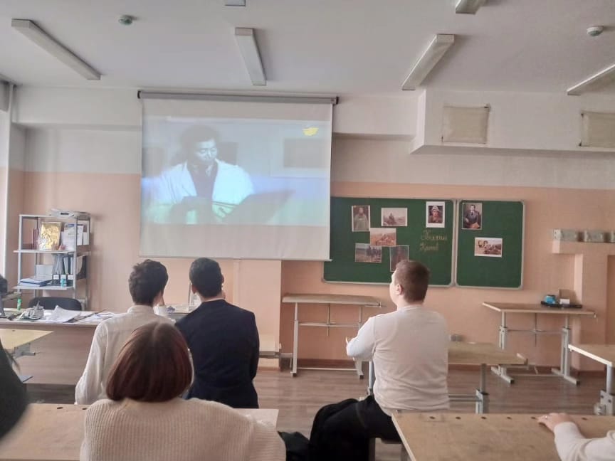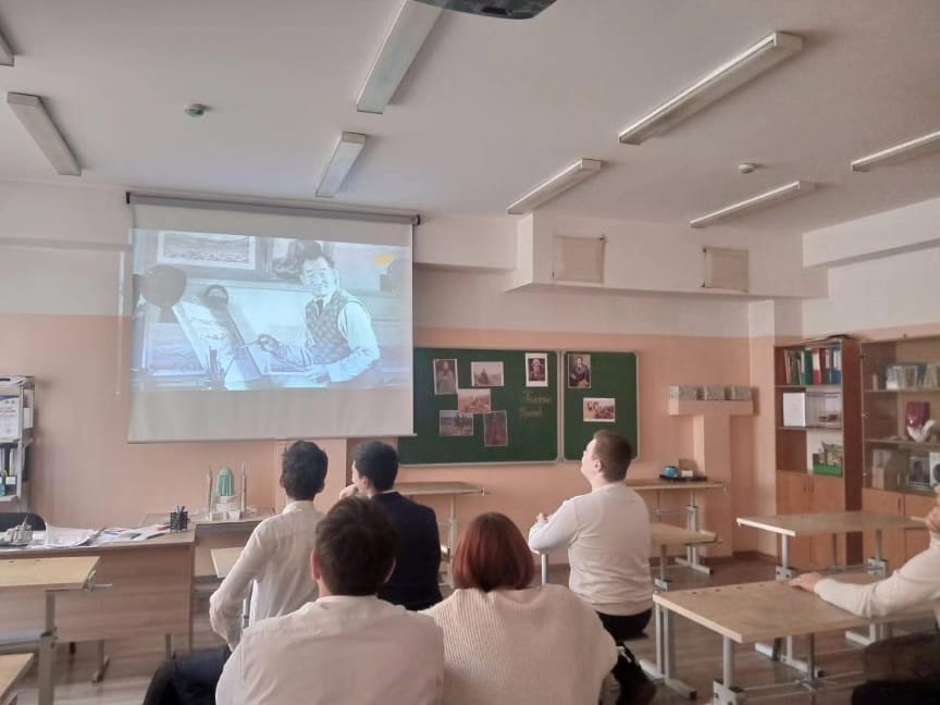 Учитель художественного труда Бочкарёв А.В. провел беседу и просмотр документального фильма "Тайны. Судьбы. Имена. Абылхан Кастеев" для учащихся 9 класса в рамках празднования 14 января 120-летия А. Кастеева.