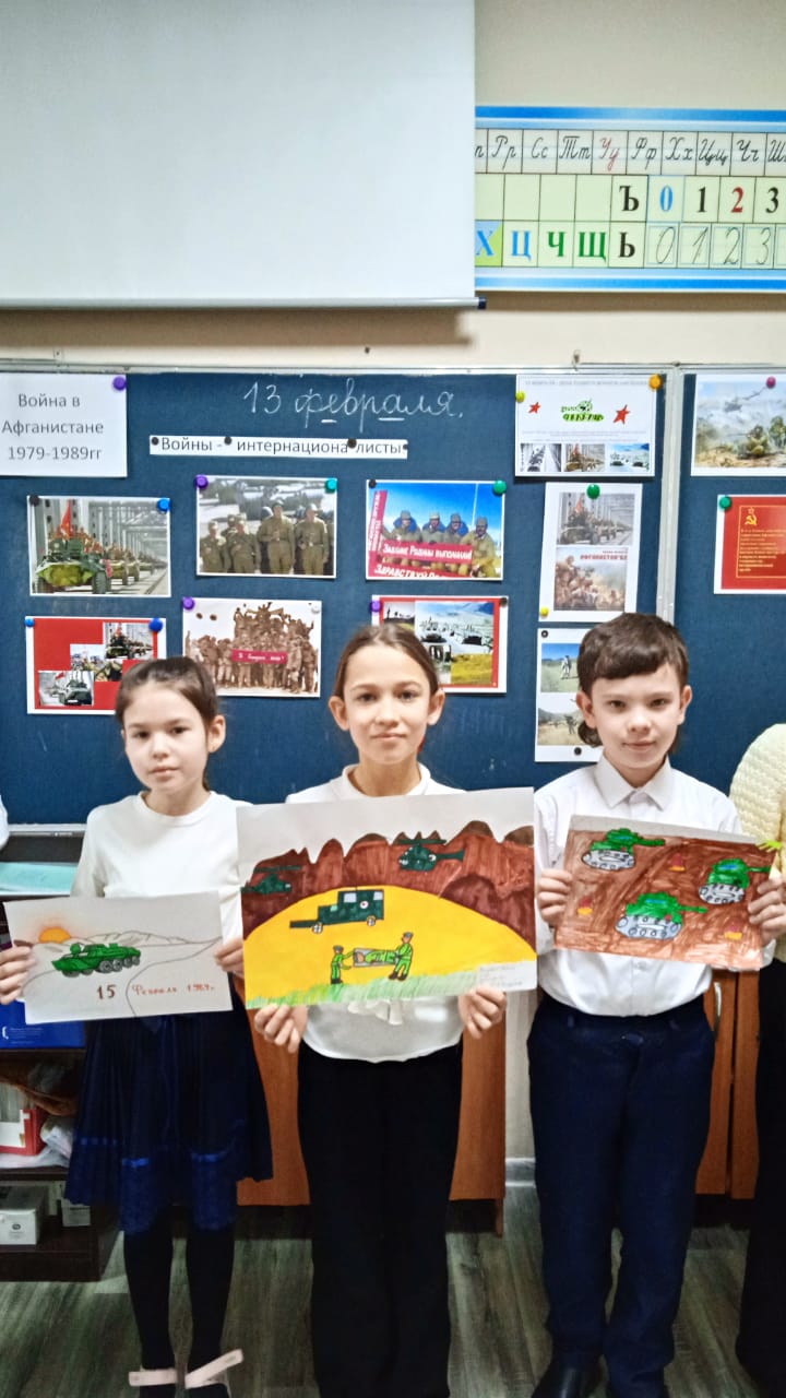 Сегодня классные руководители 9 "Г", 1 "А" и 3 "В" классов провели классные часы на тему "Афганистан - боль моей души", посвященные 35-летию вывода войск из Афганистана.