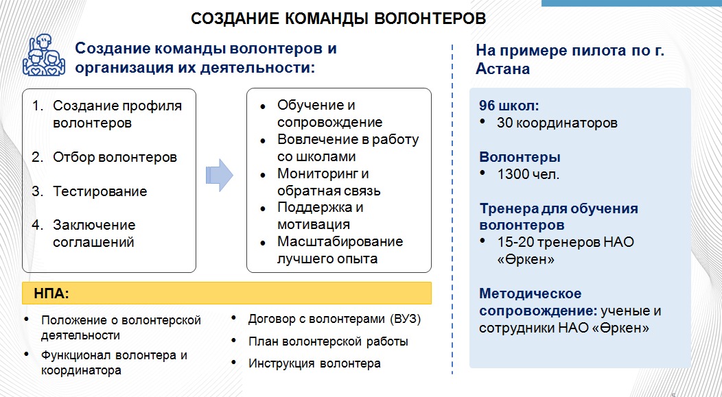 Управление образования г. Алматы совместно с НАО "Өркен" провели рабочую встречу о реализации национального волонтёрского проекта.