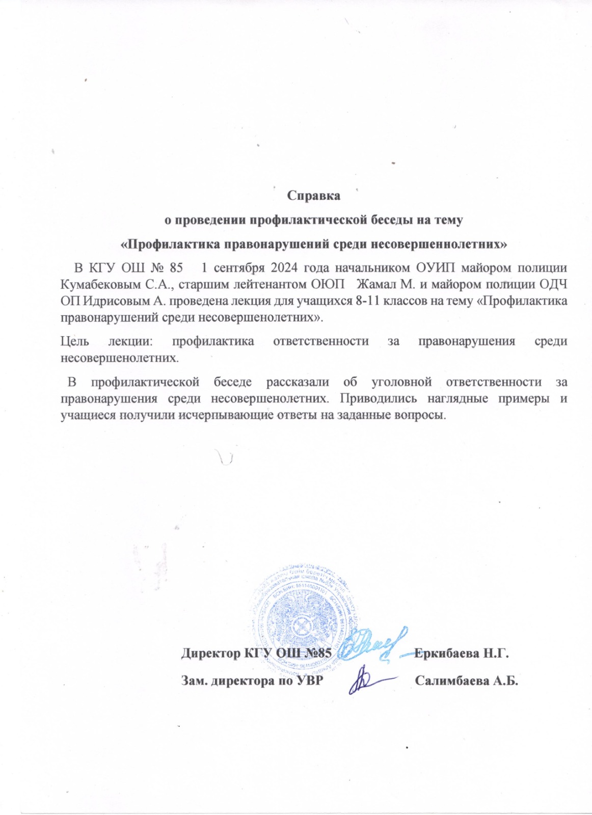 Оқушылармен профилактикалық әңгімелер » №85 Орта мектеп