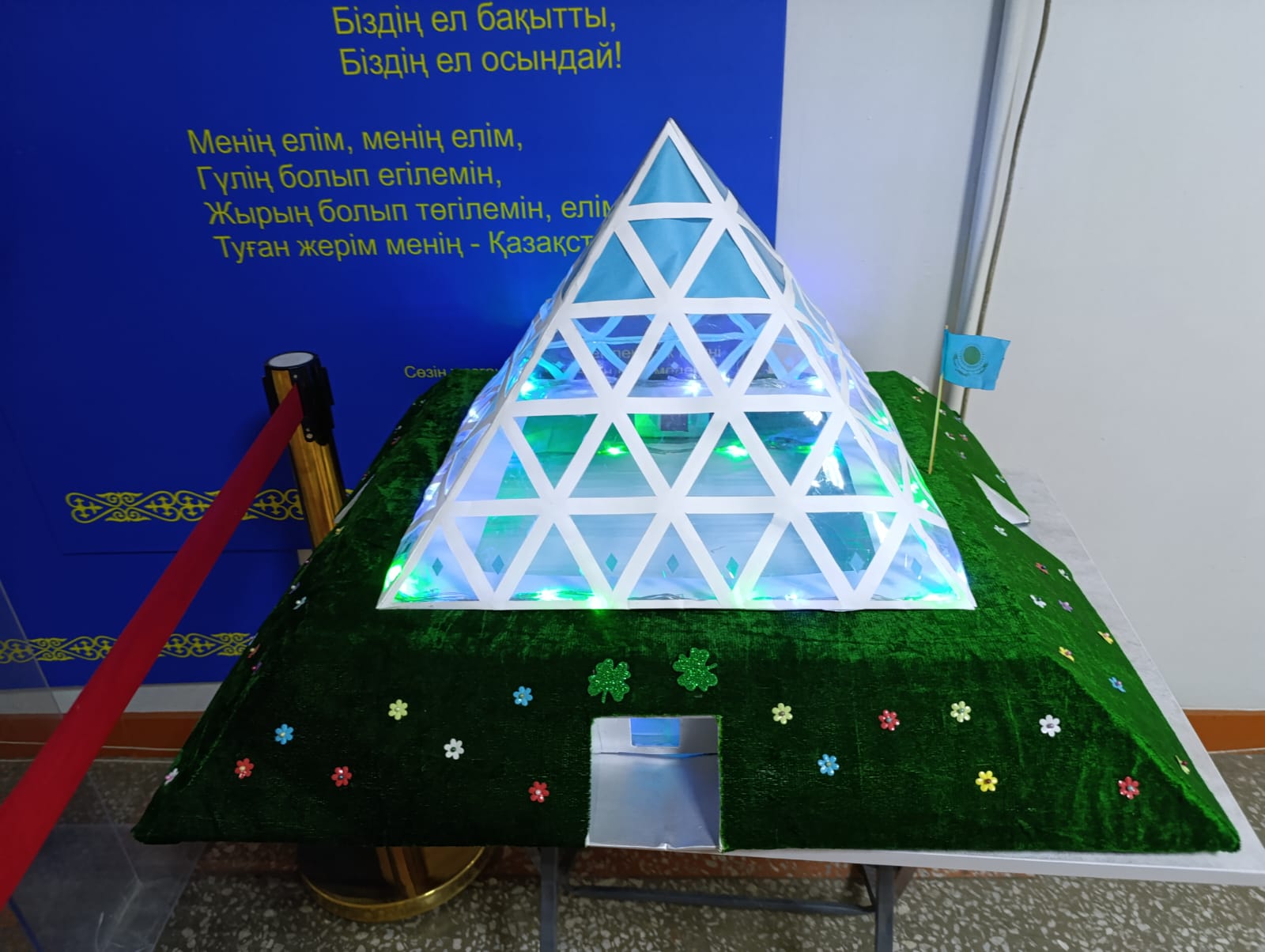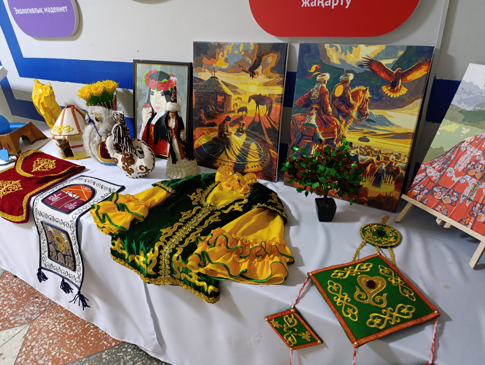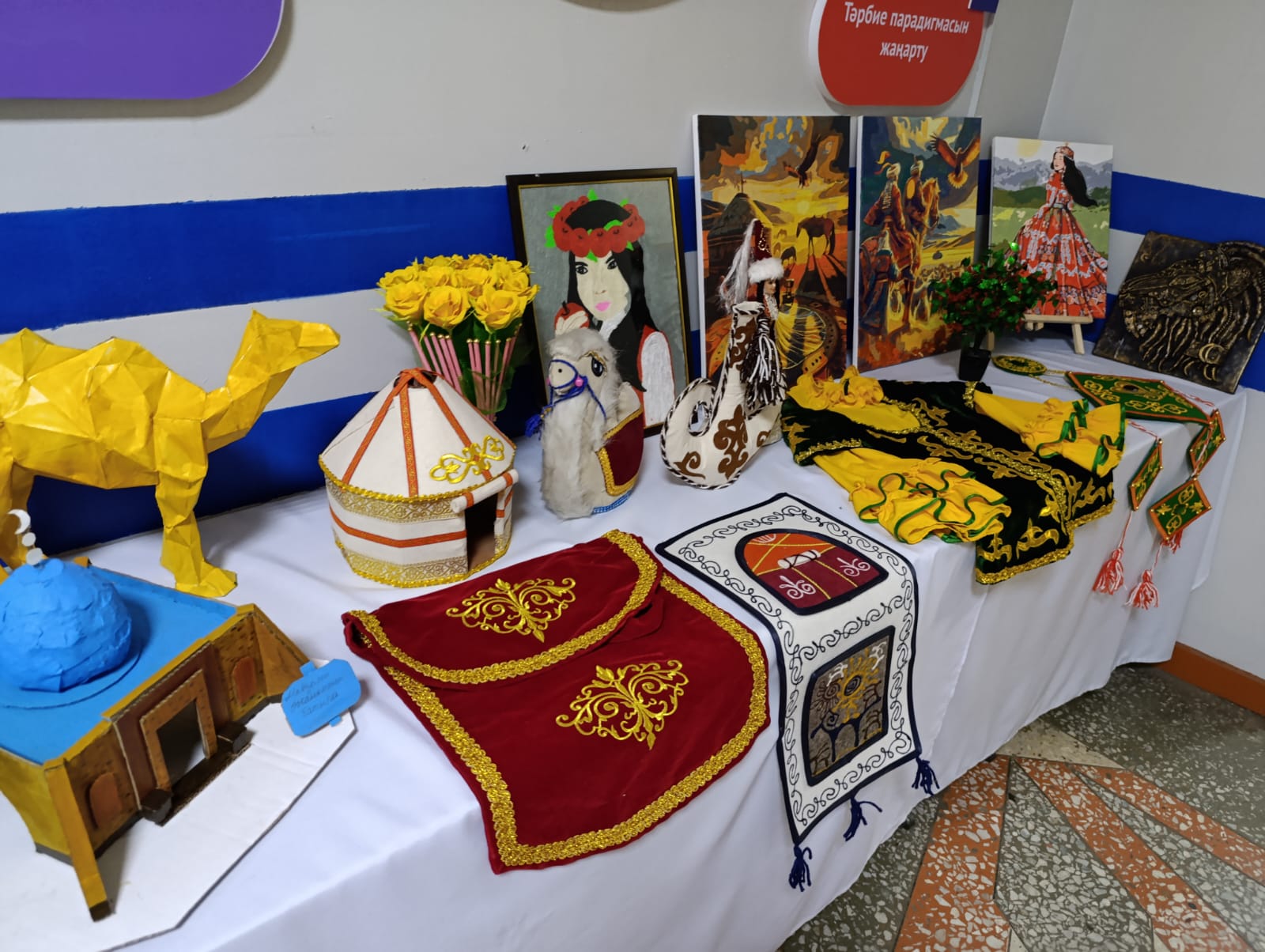 Мектепте көркем еңбек мұғалімдері И.Ю. Молодцова мен А.В. Бочкарев Қазақстан Республикасының Тәуелсіздік күніне арналған көрме дайындады.