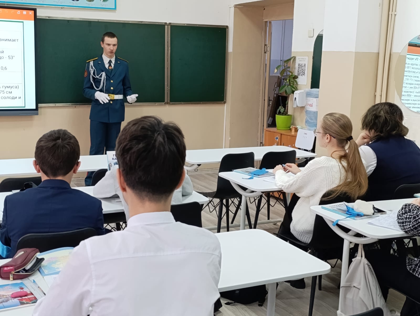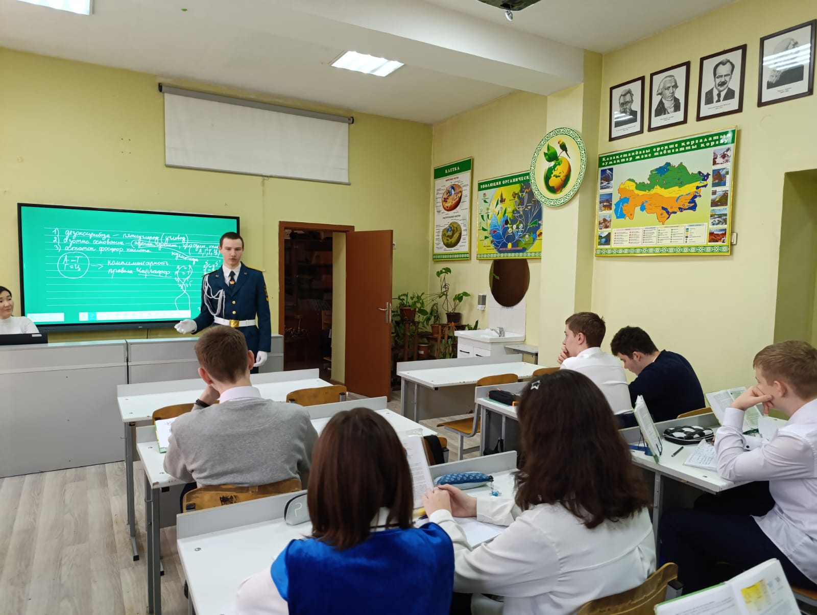 Б. Момышұлы атындағы Жас Ұлан 2 курс курсанты Киндиров Кирилл 9-сынып оқушыларымен әскери колледжге түсу туралы әңгіме өткізді.