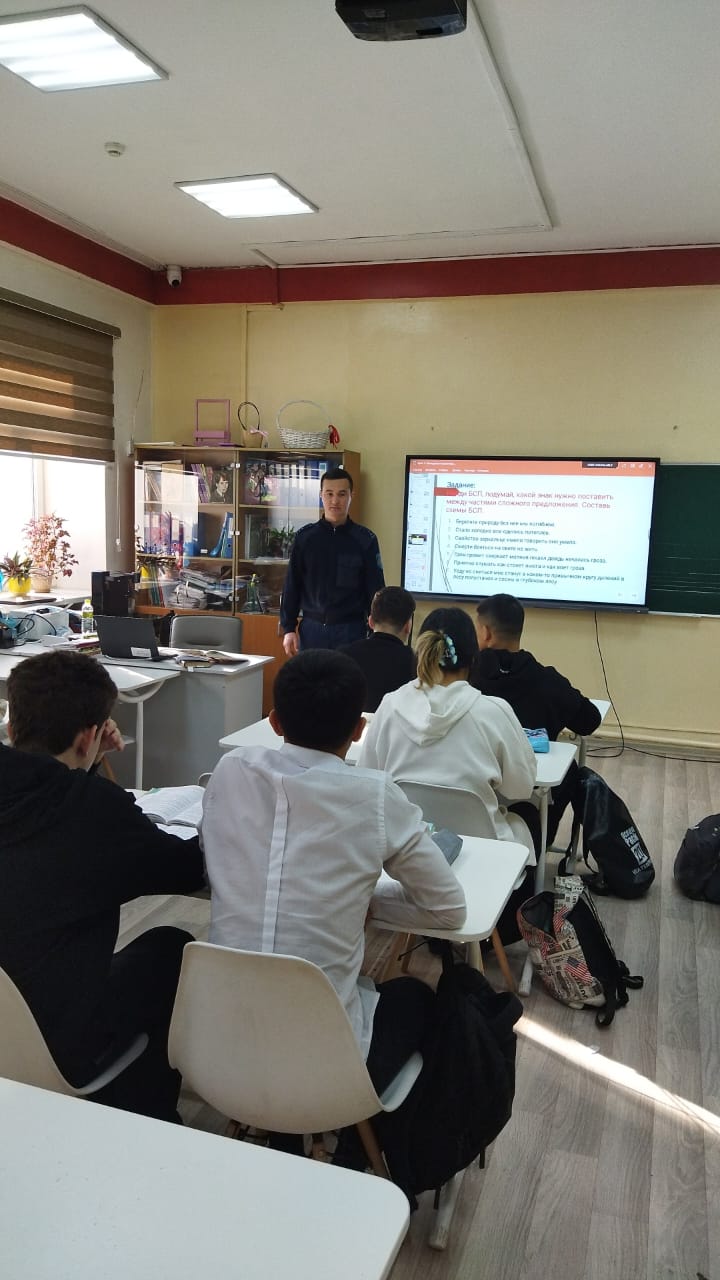 Во время оперативно-профилактического мероприятия ОПМ 28 января 2025 года старшим лейтенантом ОЮП ОМПС УП Турксибского района Жамал М. К. совместно с капитаном полиции Куралбек Е. проведена профилактическая беседа с учащимися 10 классов (в количестве 52 обучающихся) на тему «Административная ответственность несовершеннолетних».