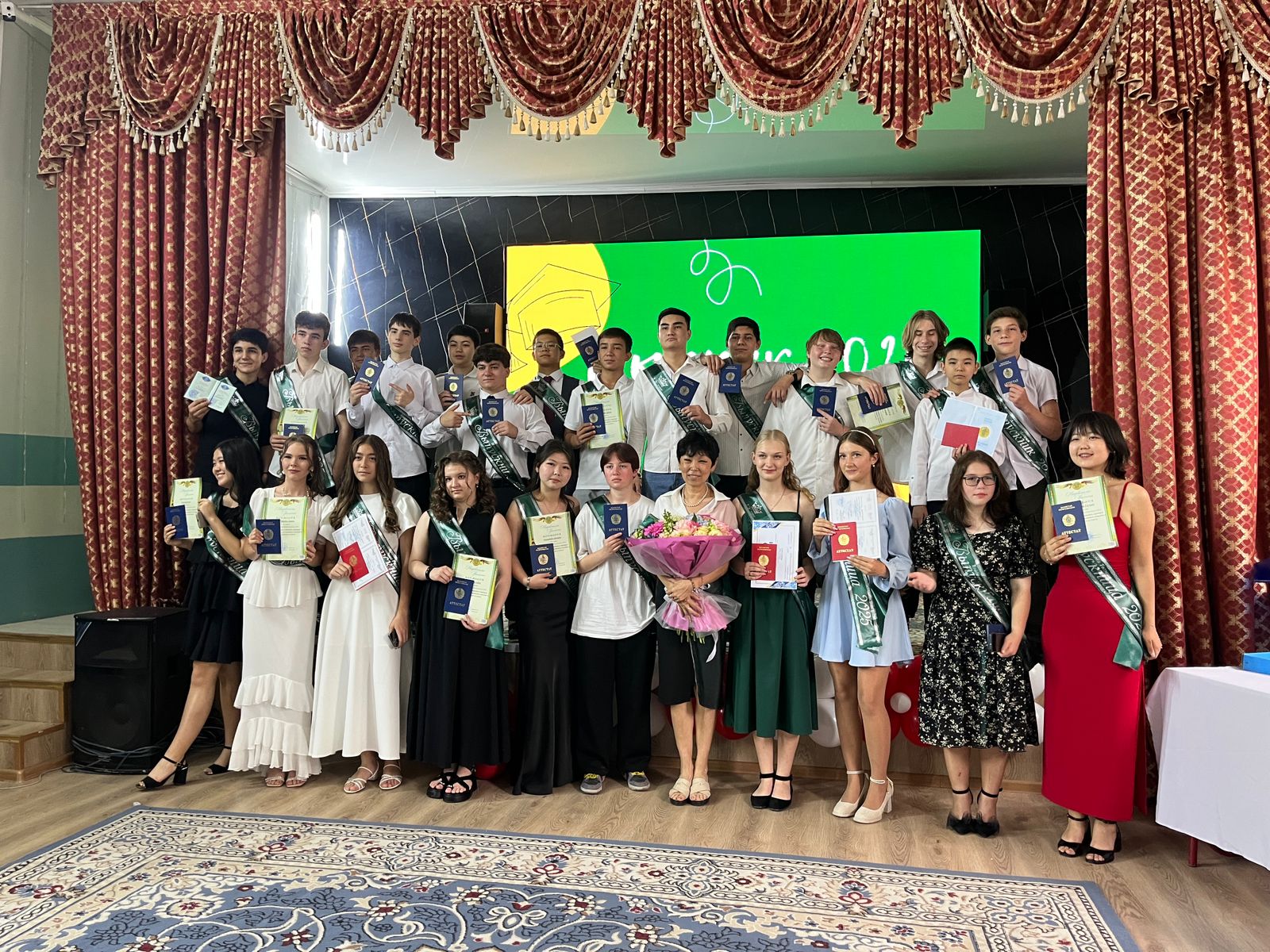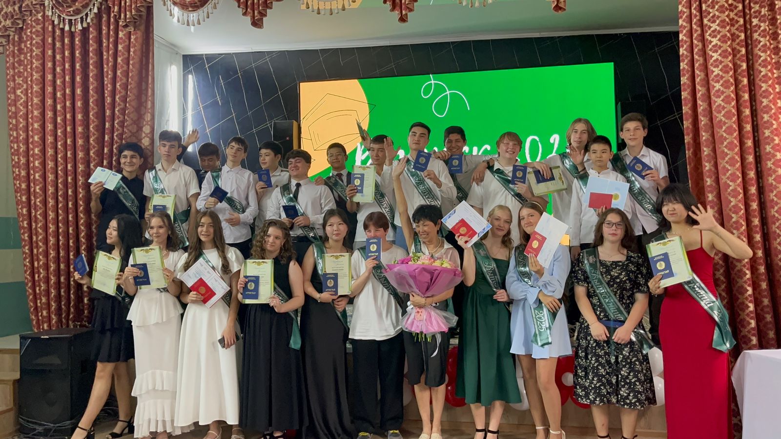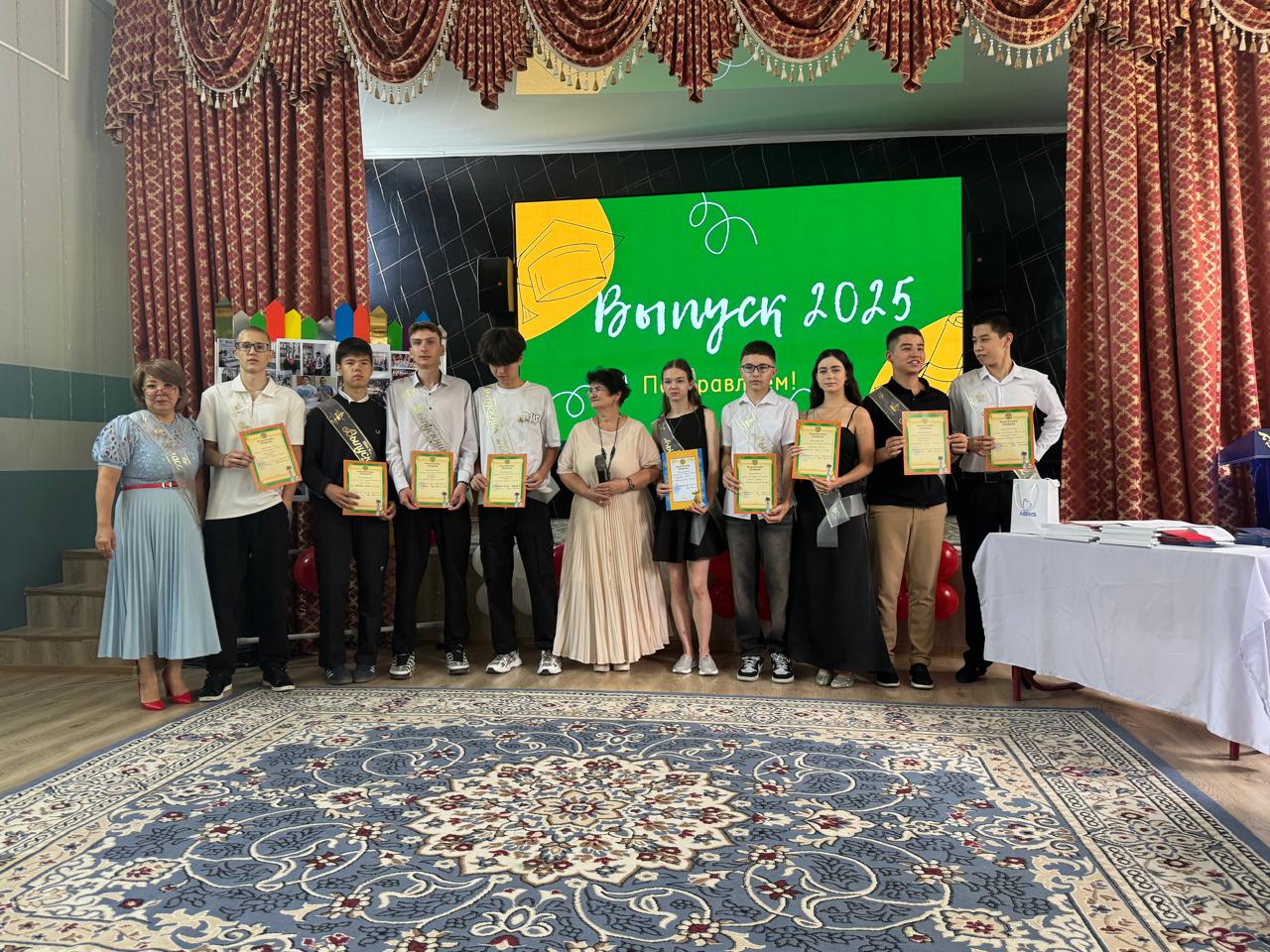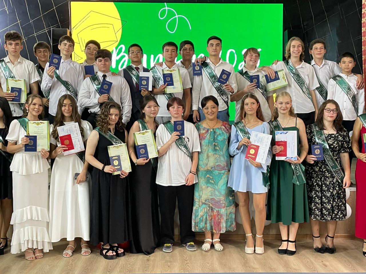 13 июнь 2025 0 1 2 3 4 5 9-сынып оқушыларын бітіру Бүгін 9-сынып оқушыларын бітіріп, аттестаттар берілді. Сегодня состоялся выпуск учащихся 9-х классов и выдача аттестатов.
