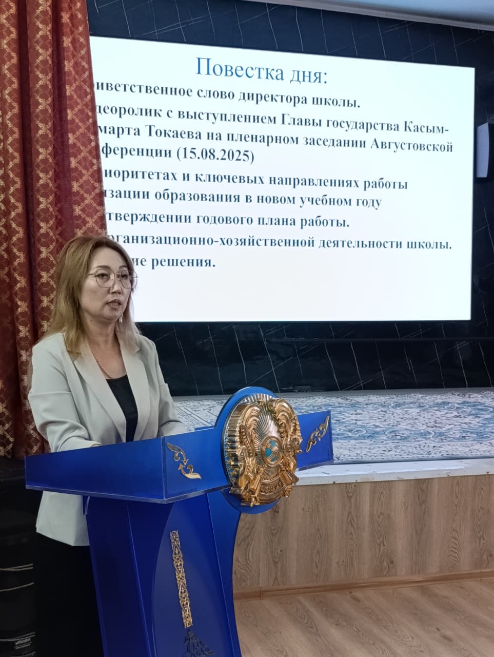 29 август 2025 0 1 2 3 4 5 Педагогикалық кеңес Бүгін мектепте "Білім беру саясаты және мектептің 2025-2026 оқу жылына арналған басымдықтары" тақырыбы бойынша педагогикалық кеңес өтті. Сегодня в школе прошёл педсовет по теме "Образовательная политика и приоритеты школы на 2025-2026 учебный год".