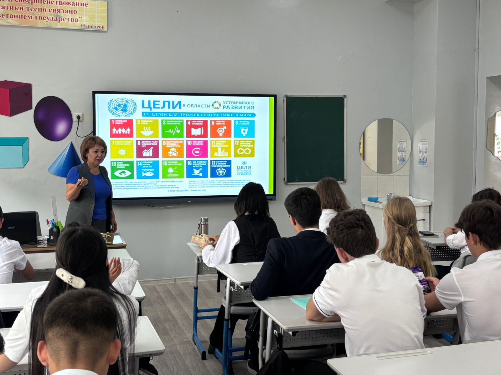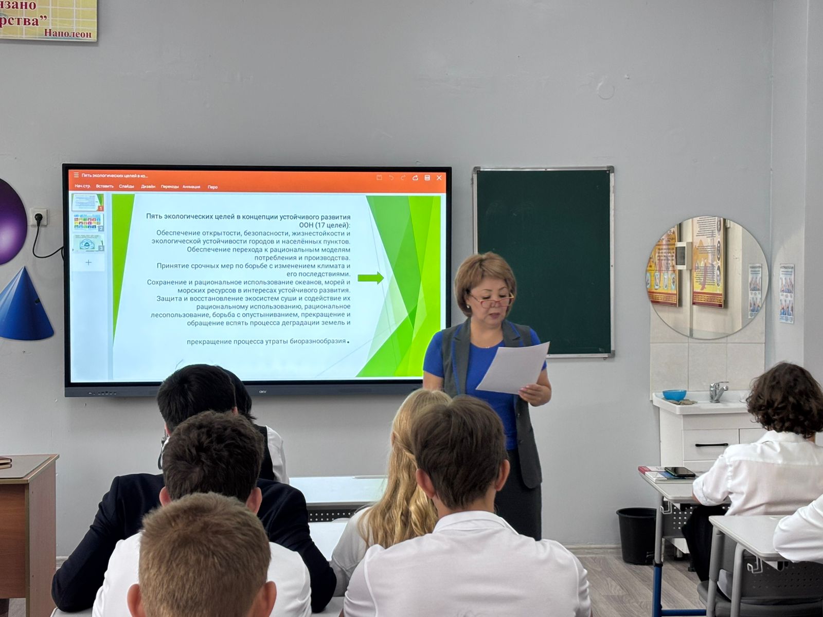 2. Классный час по теме "Концепция устойчивого развития" в рамках программы "Алматы - таза қала" в 10-классах.
