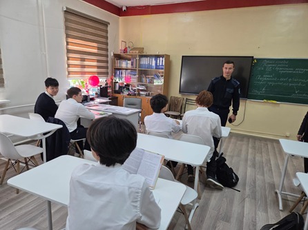 13.10.2025 года среди учащихся 11 классов, в количестве 49 детей, проведена беседа на тему «Повышение правовой грамотности: ответственность несовершеннолетних за совершение уголовных правонарушений» сотрудником ОКП капитаном полиции Куралбек Е.М. совместно с УИП ОЮП Турксибского района старшим лейтенантом Жамал М.К. Были вынесены вопросы об ответственности несовершеннолетних за совершение уголовных правонарушений.