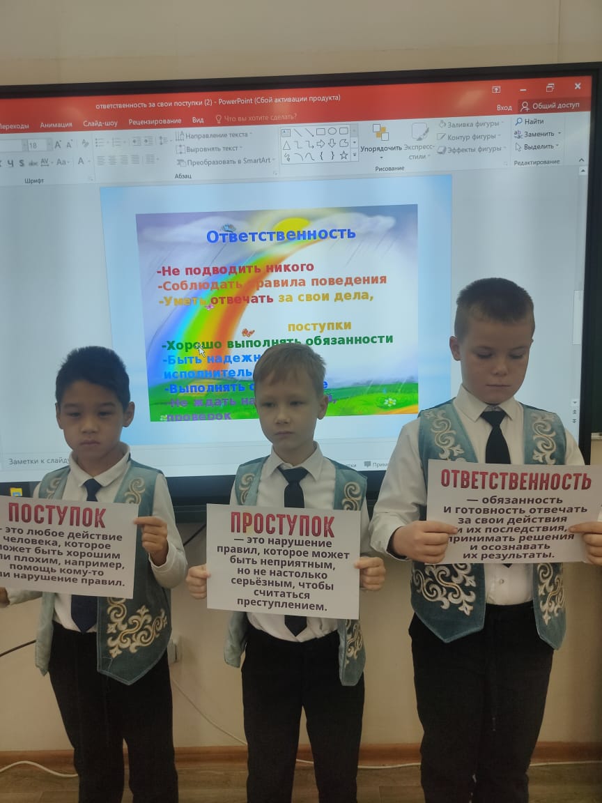 3. Классный час по программе "Адал Азамат" на тему "Ответственность за свои поступки" в 3 "А" классе.
