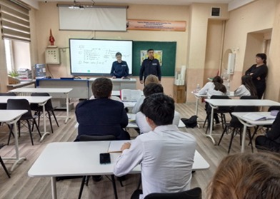 В КГУ ОШ № 85 26 ноября 2025 года старшим лейтенантом ОЮП Жамал М. К. проведена профилактическая беседа с учащимися 9 классов (в количестве 104 обучающихся) на тему «С какого возраста наступает уголовная и административная ответственность».