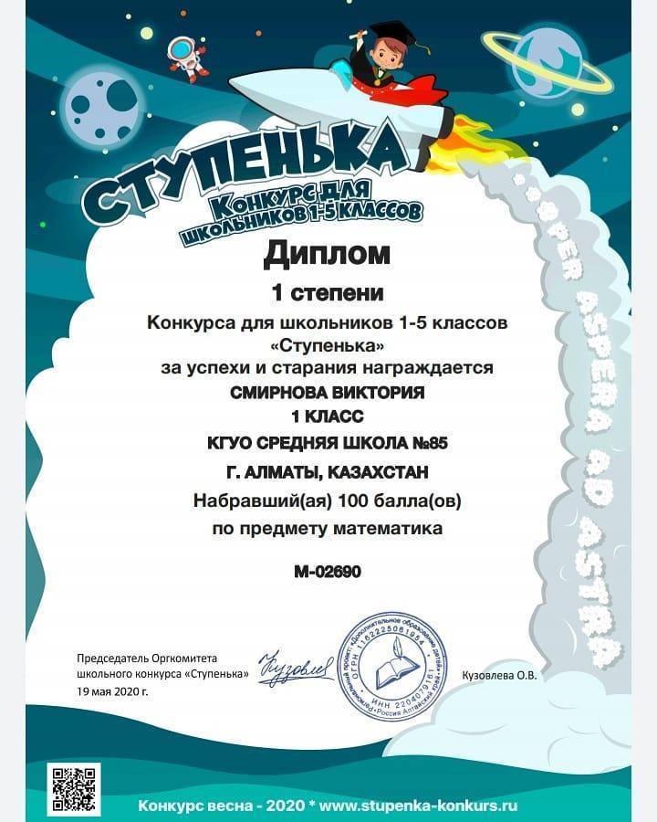 21 май 2020 0 1 2 3 4 5 Наши призеры Во время дистанционного обучения обучающиеся и учителя КГУ ОШ №85 радуют нас своими успехами. Молодцы!