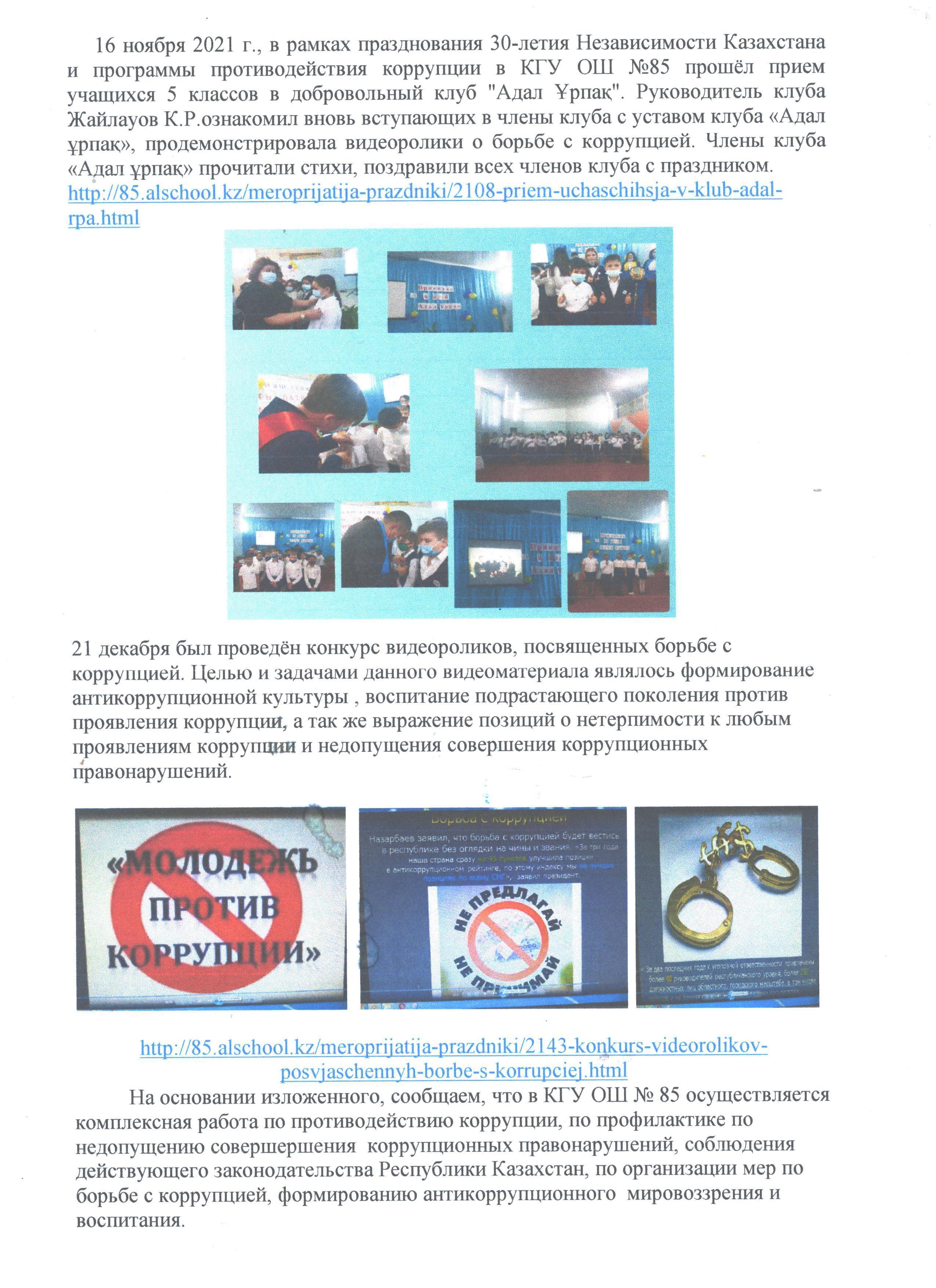 29 декабрь 2021 0 1 2 3 4 5 2021-2022 оқу жылының 1 жартыжылдығындағы сыбайлас жемқорлыққа қарсы іс-қимыл жөніндегі есеп