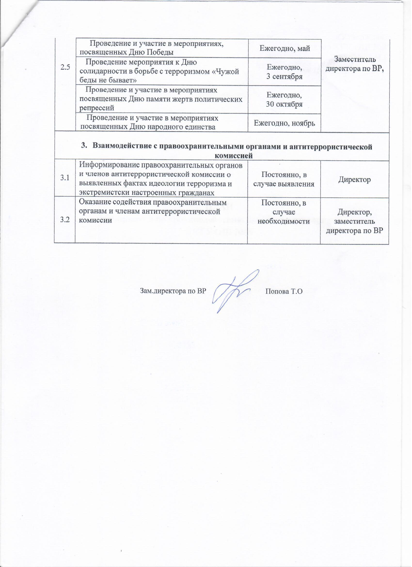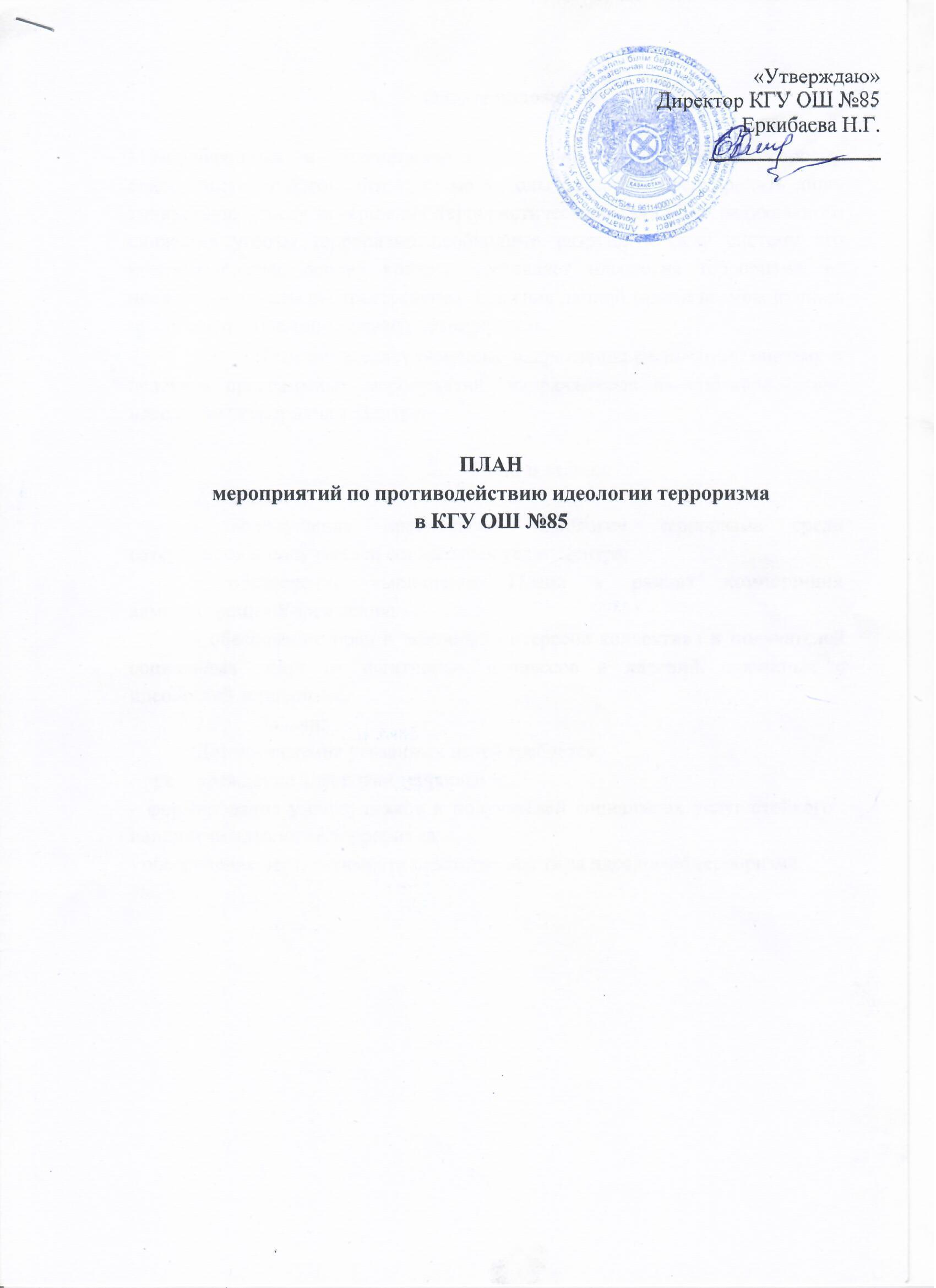 Терроризм идеологиясына қарсы іс-қимыл жөніндегі іс-шаралар жоспары » №85 Орта мектеп