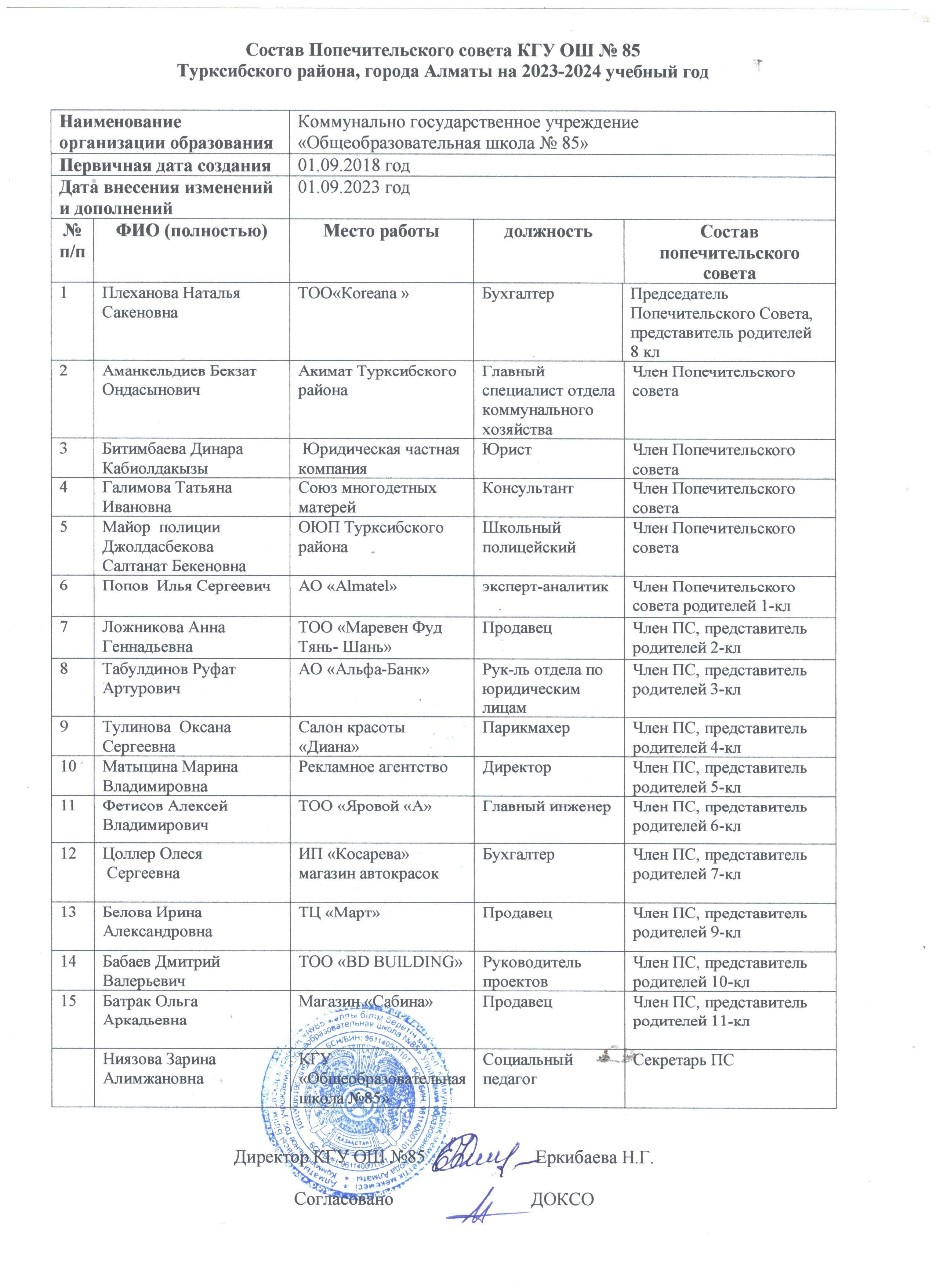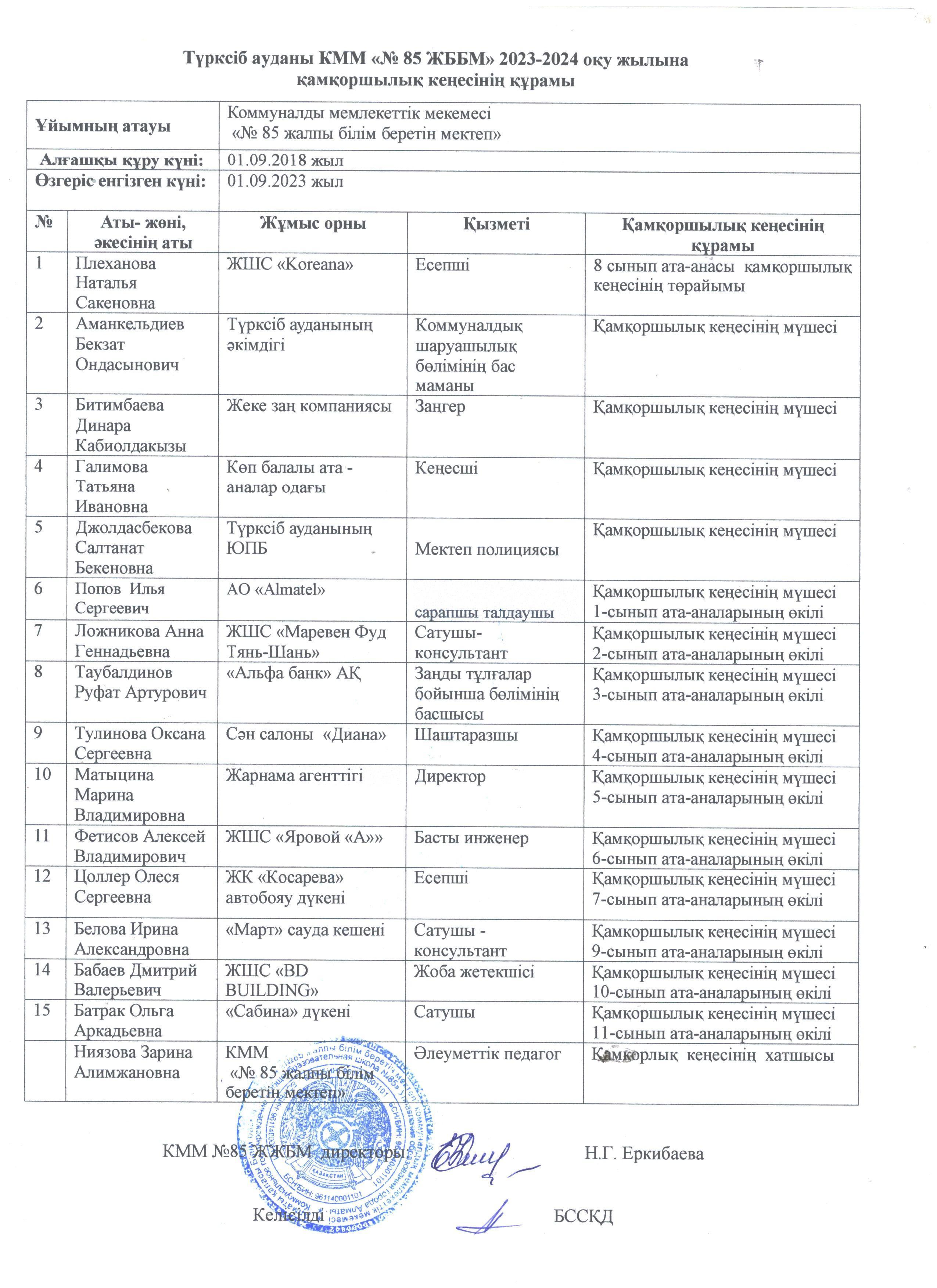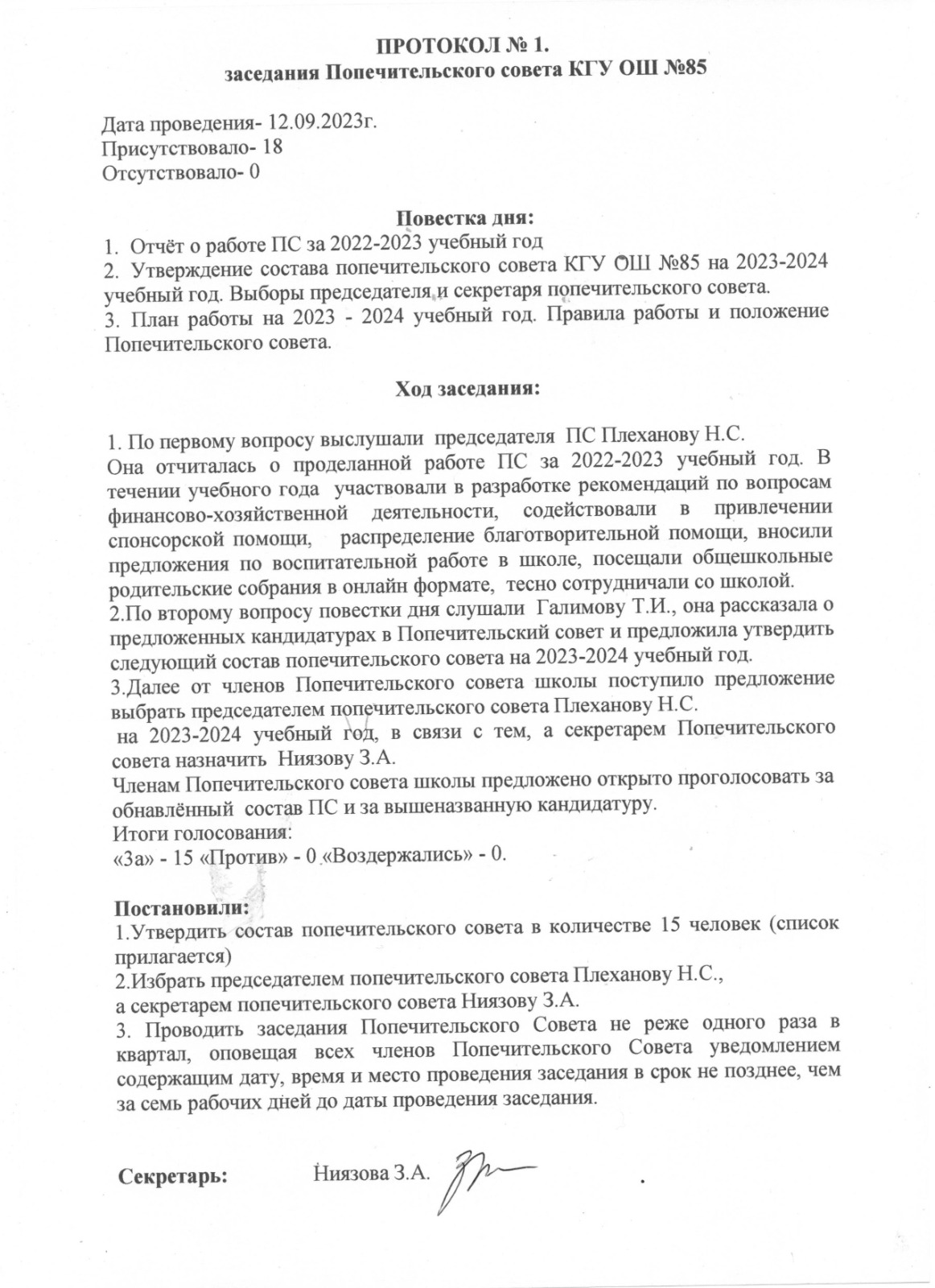 12.09.2023 ж. Қамқоршылық кеңес отырысының хаттамасы » №85 Орта мектеп