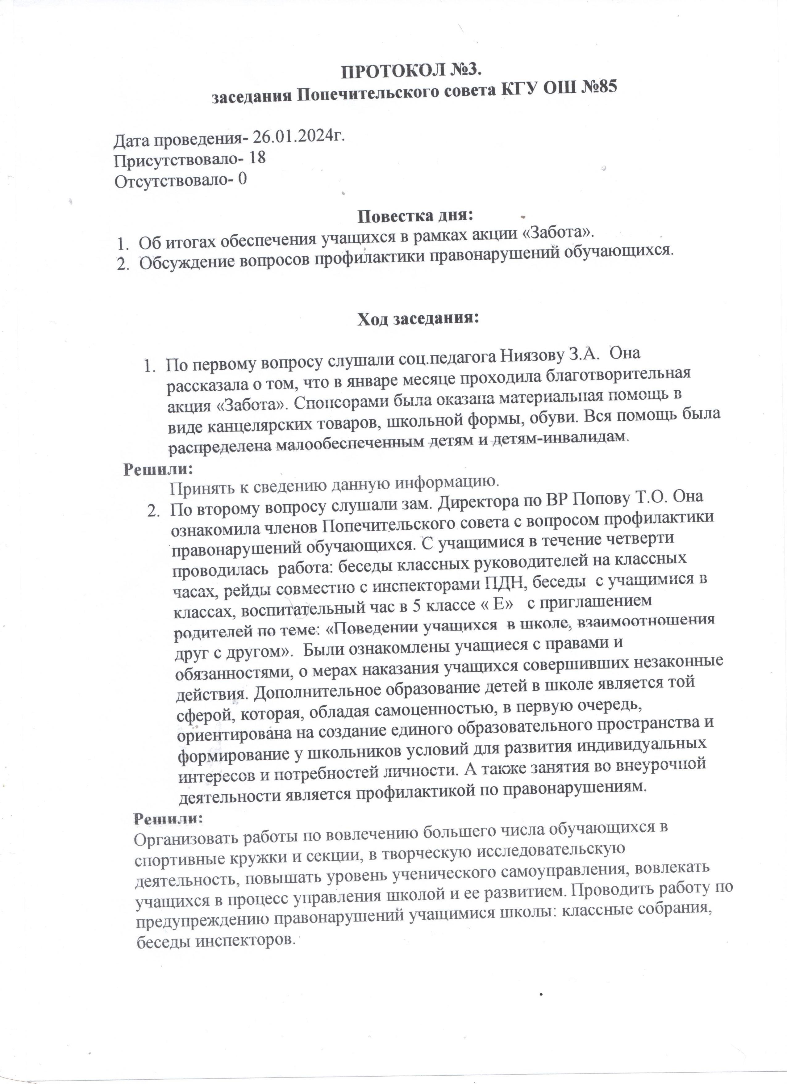 26.01.2024 ж. Қамқоршылық кеңес отырысының хаттамасы » №85 Орта мектеп