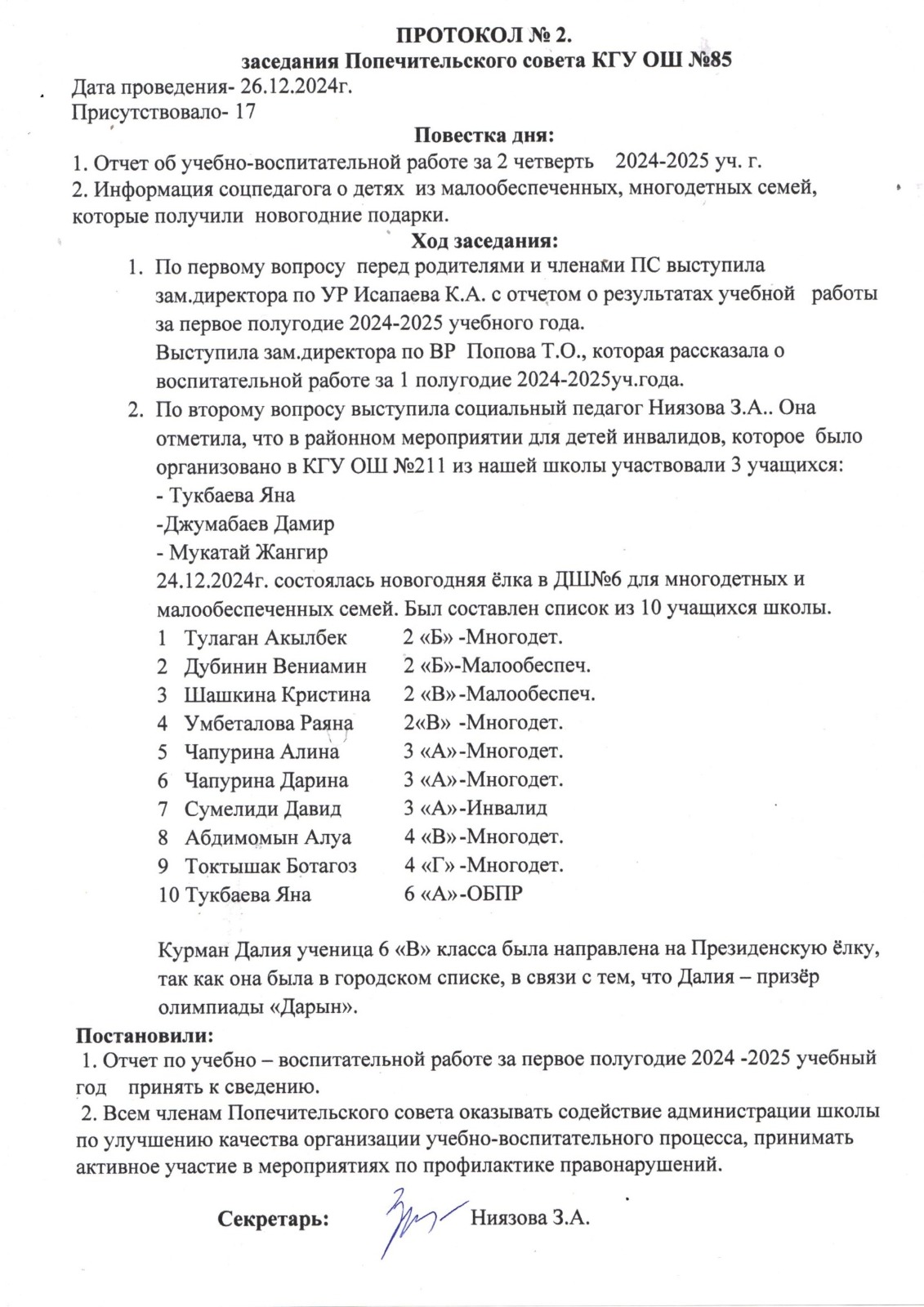 » » » 26.12.2024 ж. Қамқоршылық кеңес отырысының хаттамасы