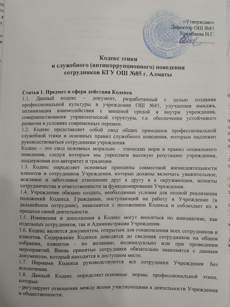 20 сентябрь 2021 0 1 2 3 4 5 Қызметкерлердің әдеп және қызметтік сыбайлас жемқорлыққа қарсы мінез-құлық кодексі