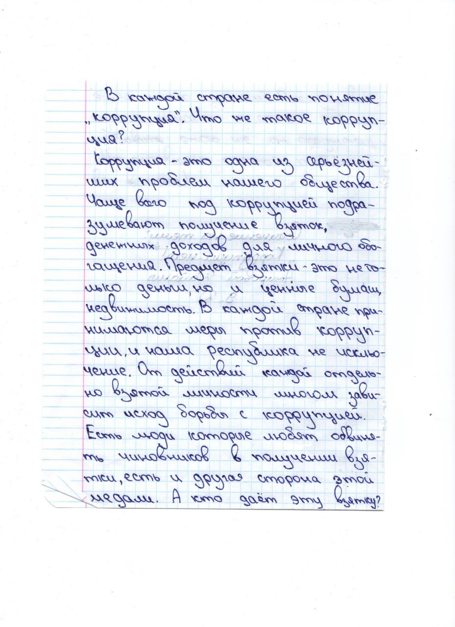» » » "Сыбайлас жемқорлық - біздің қоғамның проблемасы" тақырыбындағы эссе