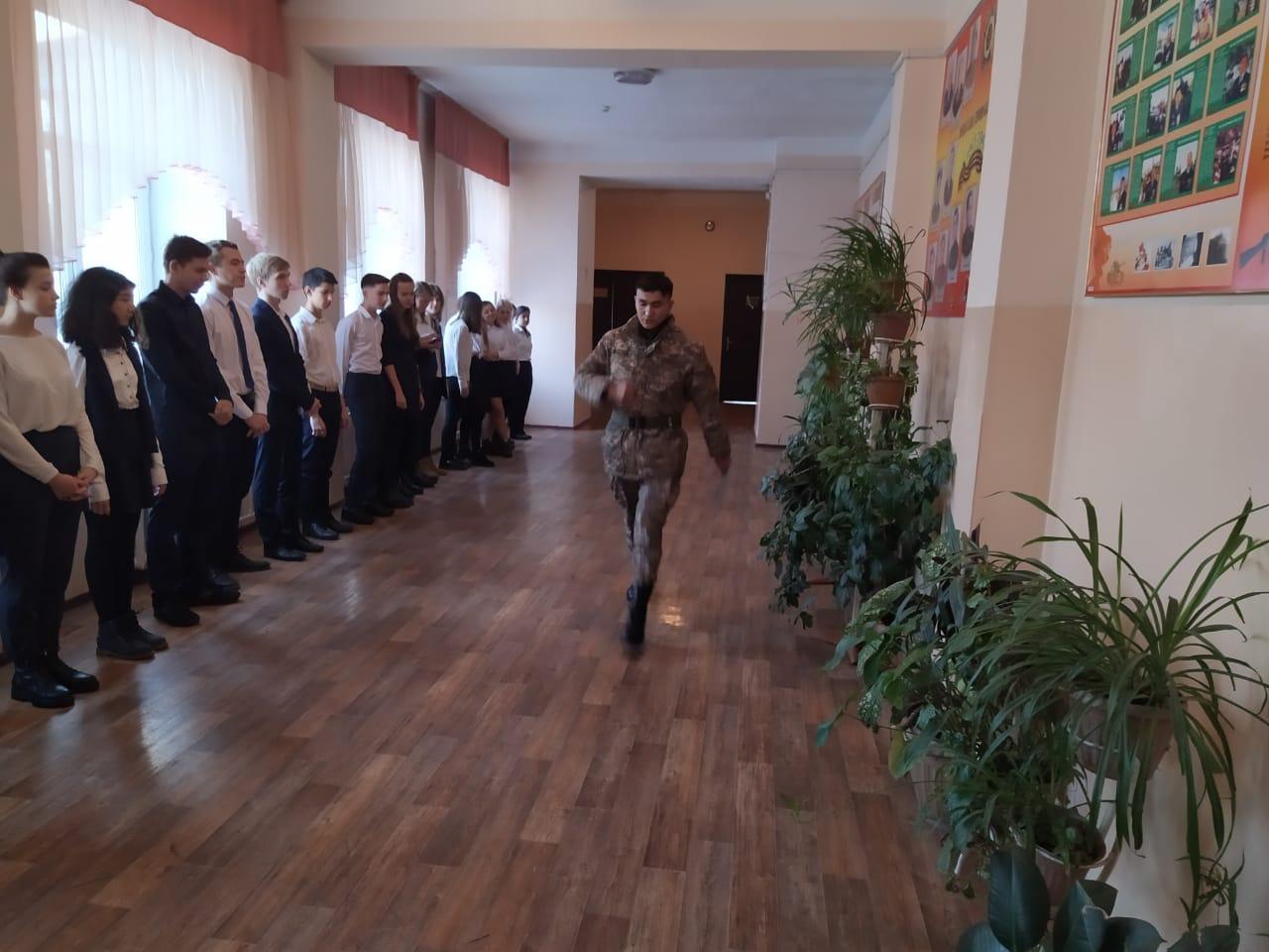 №85 Орта мектеп » Оқушыларға » В школе 85 провели практическое занятие по программе " Жас Сарбаз". Проводил занятие среди обучающихся 10-11 классов старший сержант Байр Арман Амзеұлы по теме " Строевая подготовка".