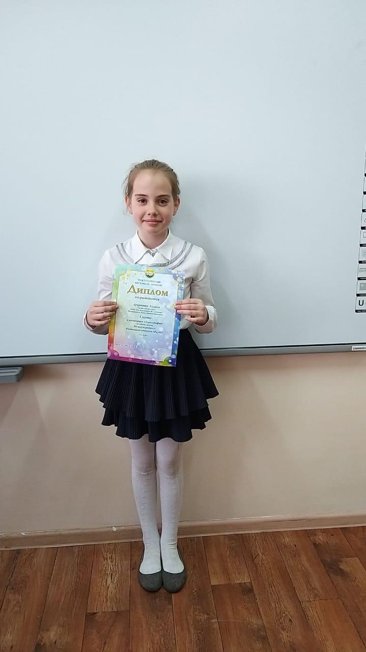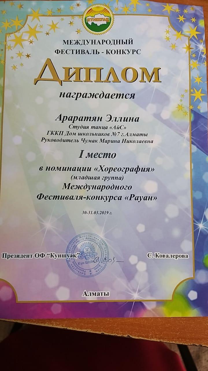 Ученица 4 "В" класса Араратян Элина заняла 1 место в номинации "Хореография" Международного Фестиваля - конкурса "Рауан"