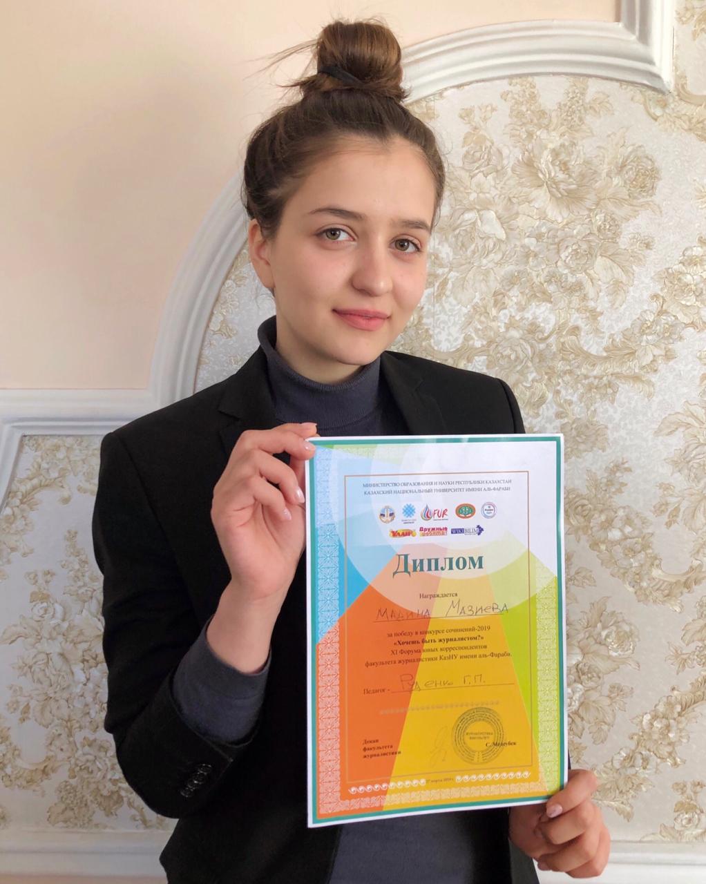 24 апрель 2019 0 1 2 3 4 5 Ученица 11 "А" класса Мазиева Дениза лауреат национального конкурса сочинений КазНУ