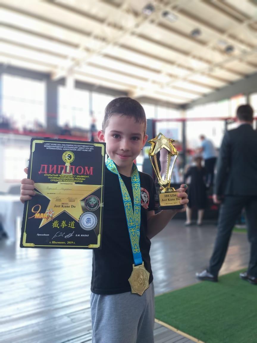 Ученик 3 "Г" класса Фефелов Назарий принял участие в чемпионате Южно-казахстанской области по правилам ММА (смешанным единоборствам) в честь Дня Победы, прошедшем в г. Шымкент. Назарий одержал победу, стал чемпионом ЮКО и был награжден кубком "Звезда JKD".
