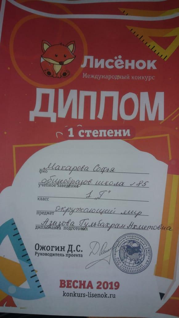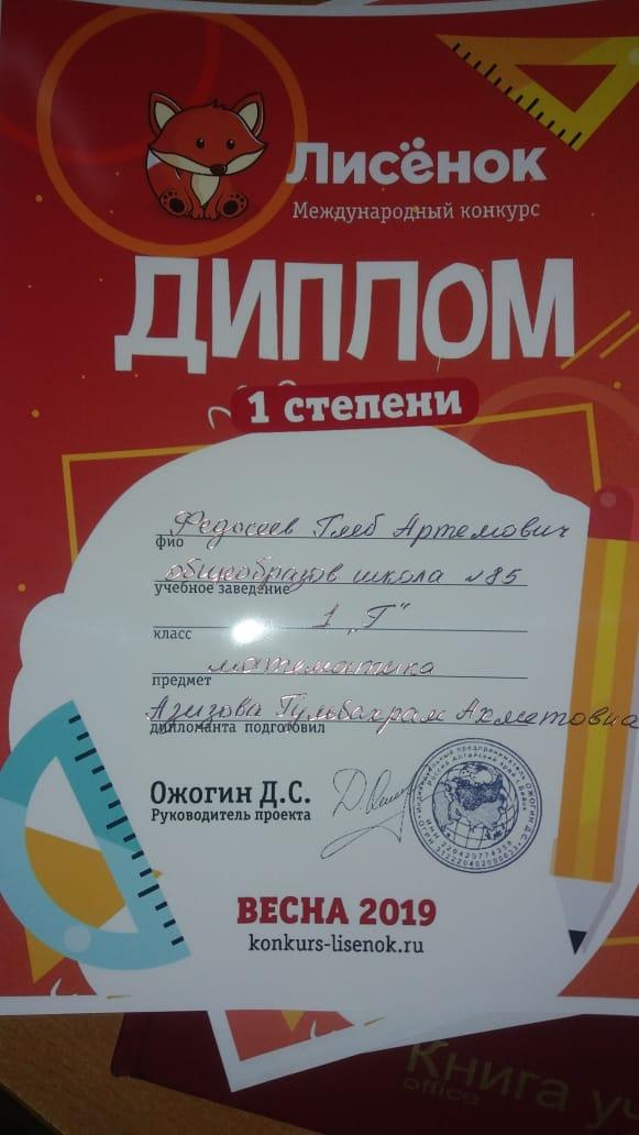 Призеры международных конкурсов » №85 Орта мектеп