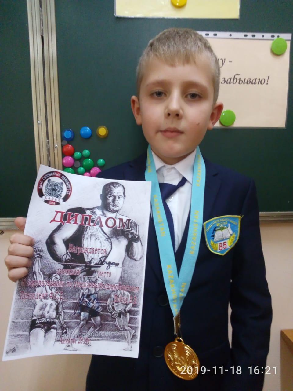 Ученик 3 "В" класса Ложников Богдан занял 1 место в соревновании по смешанным единоборствам.