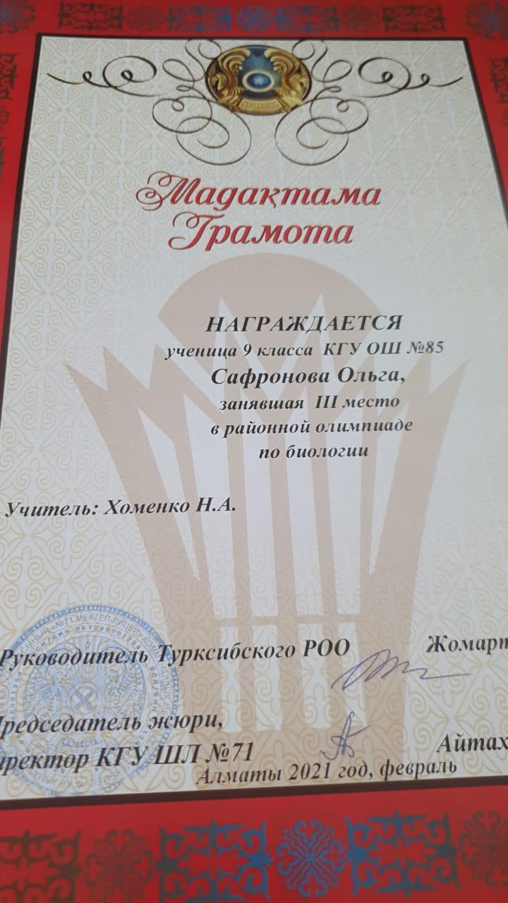 05 март 2021 0 1 2 3 4 5 Наши призеры Учащиеся КГУ ОШ №85, принимавшие участие в районной предметной олимпиаде, награждены грамотами за призовые места.