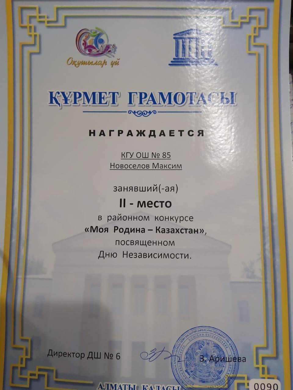 10 март 2021 0 1 2 3 4 5 Наши призеры Учащиеся КГУ ОШ №85, принимавшие участие в районном конкурсе "Моя Родина - Казахстан", посвященном Дню Независимости, награждены грамотами за призовые места.
