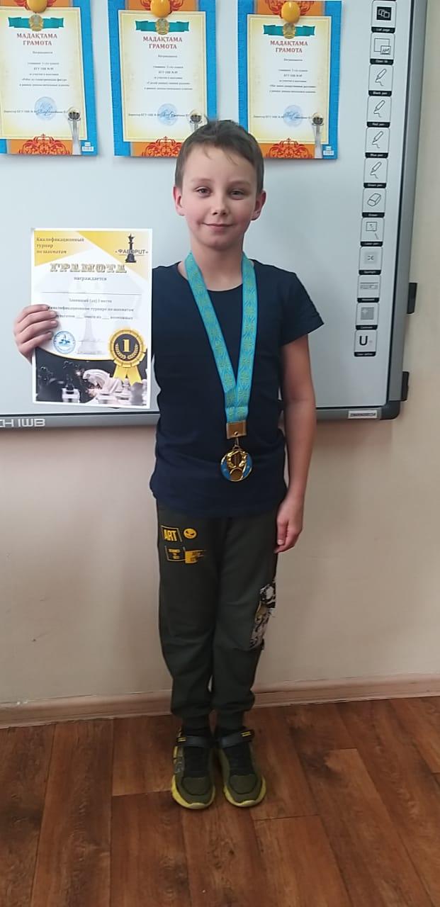 09 март 2022 0 1 2 3 4 5 Наши призеры Ученик 3 "А" класса Бендер Илья занял 1 место в соревнованиях по шахматам.