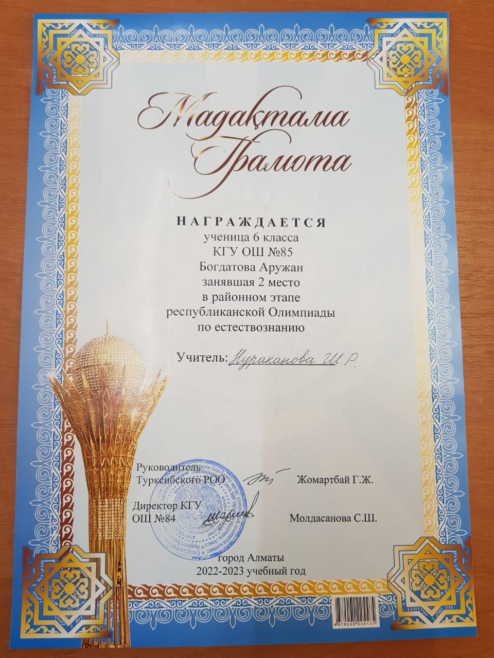 Оқушылар жетістіктері » №85 Орта мектеп