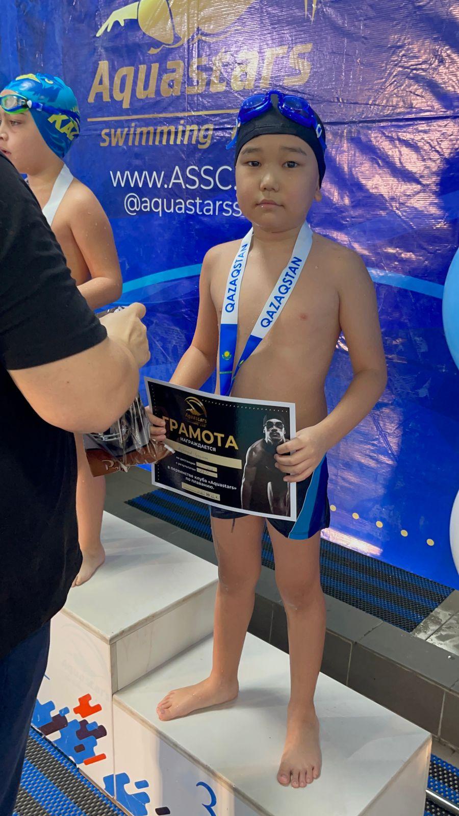 Ученики 2 "А" класса Громов Александр и Аубакиров Ерсултан заняли призовые места в первенстве клуба "Aquastars" по плаванию.