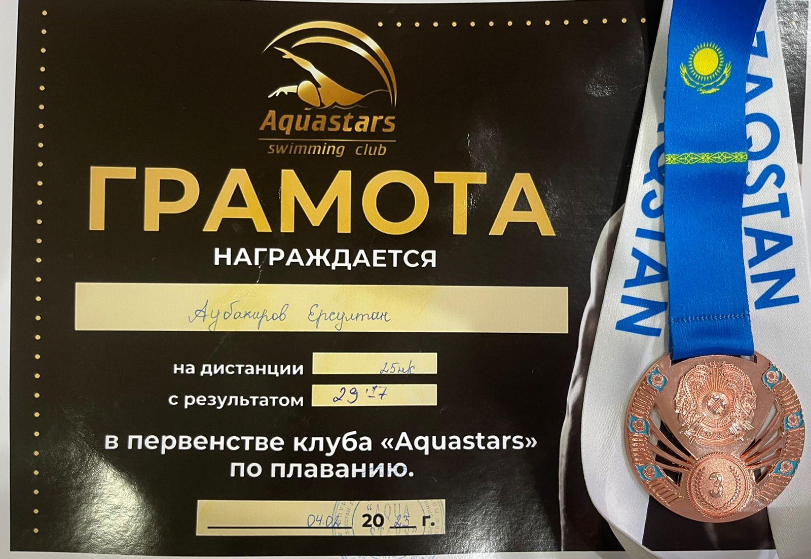2 "А" сынып оқушылары Громов Александр мен Аубакиров Ерсултан жүзуден "Aquastars" клубының біріншілігінде жүлделі орындарға ие болды.
